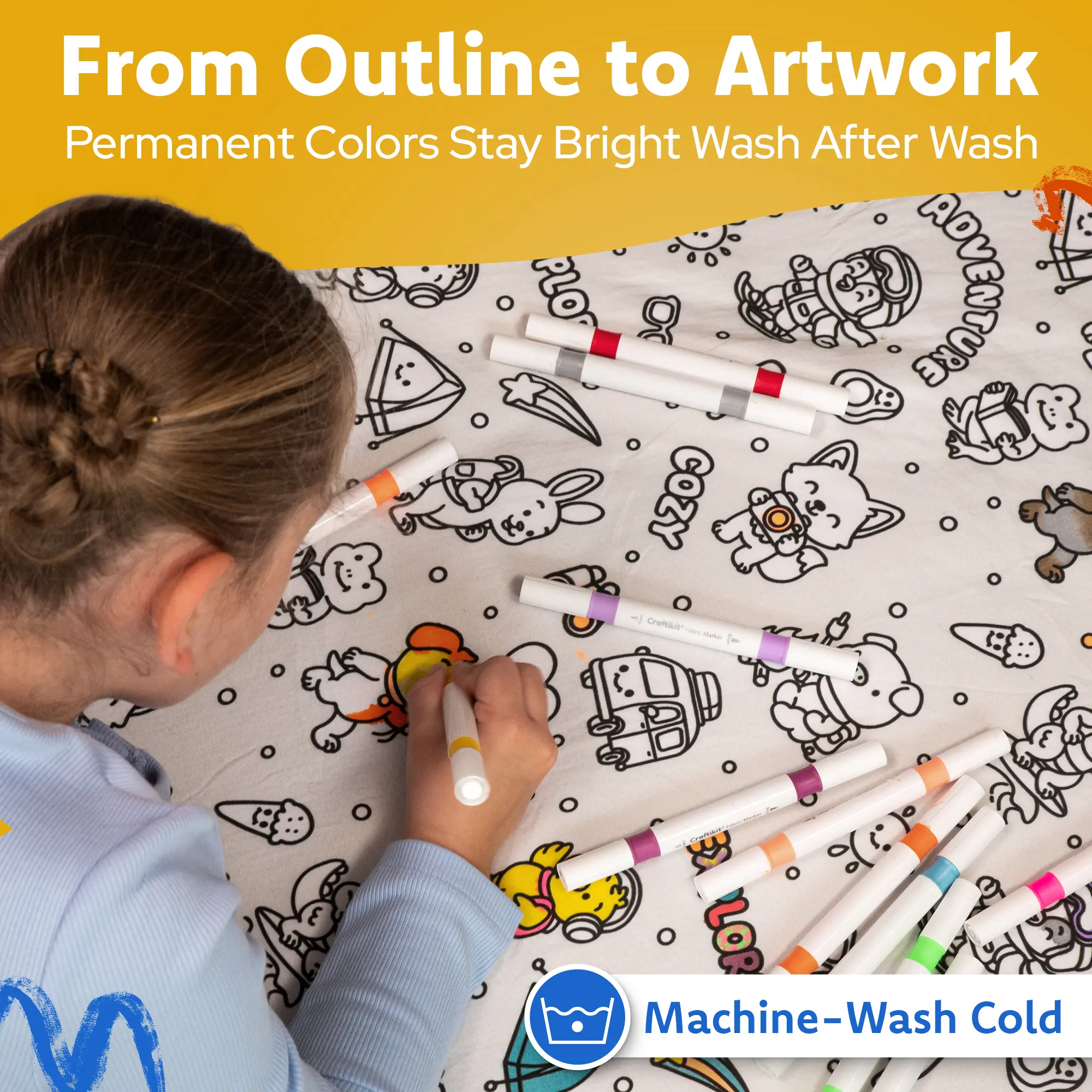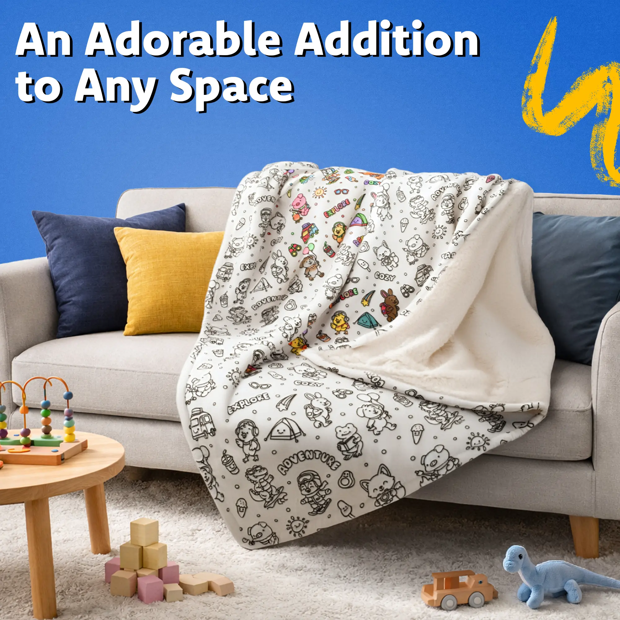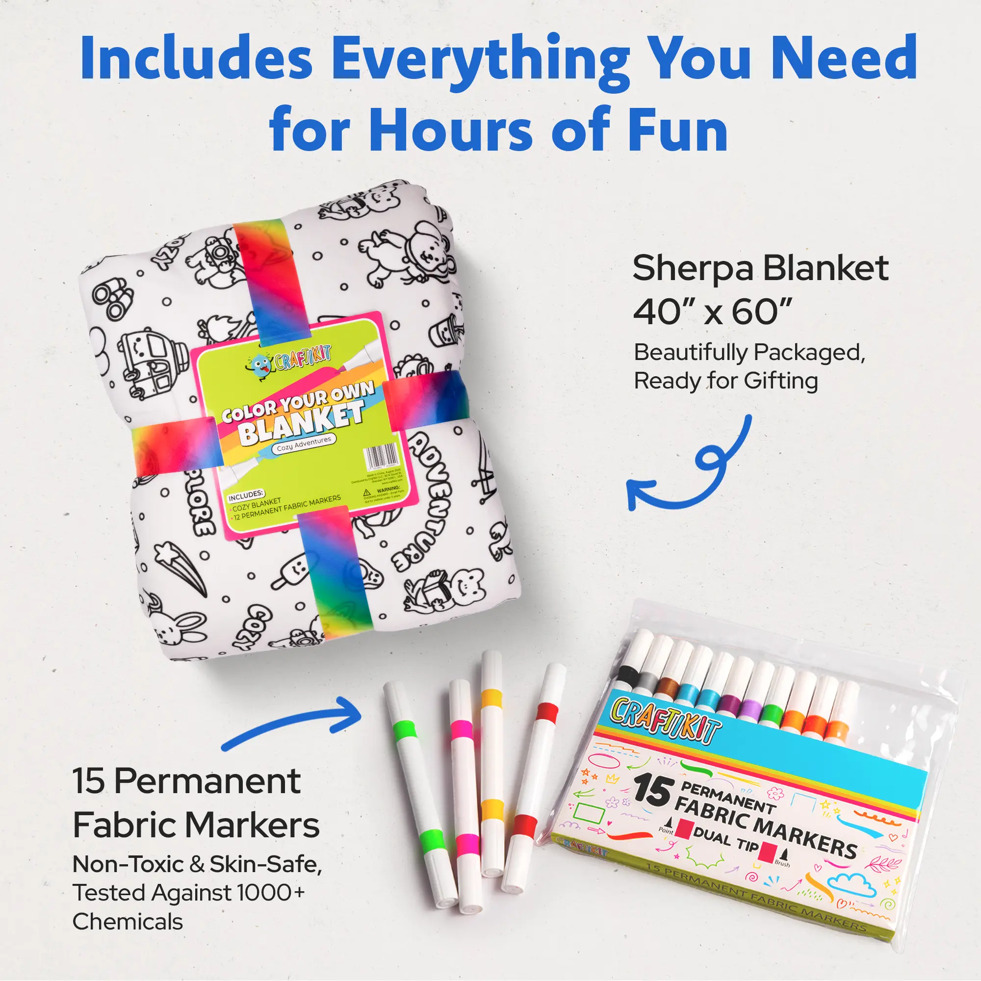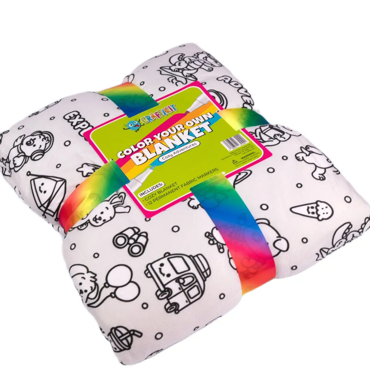 Let kids turn creativity into a cozy masterpiece! This Travel Animals Coloring Blanket Kit lets kids design their own blanket using the included permanent fabric markers. Once colored, the artwork stays — even after washing — creating a personalized blanket they’ll love.