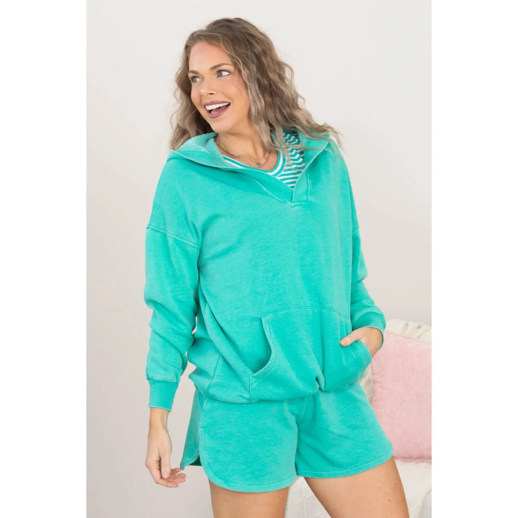 ·Neckline: V-Neck With Hood