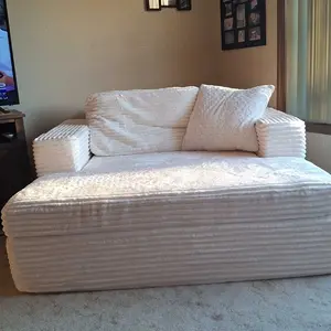 If you are tall this is not for you! The back is not high and you feel awkward if you sit up. Then your legs hang off if you try to lay down. Wish you could buy something to make it longer. Box came torn up. Thankfully did not damage the chair itself. It is however very soft and not super heavy.