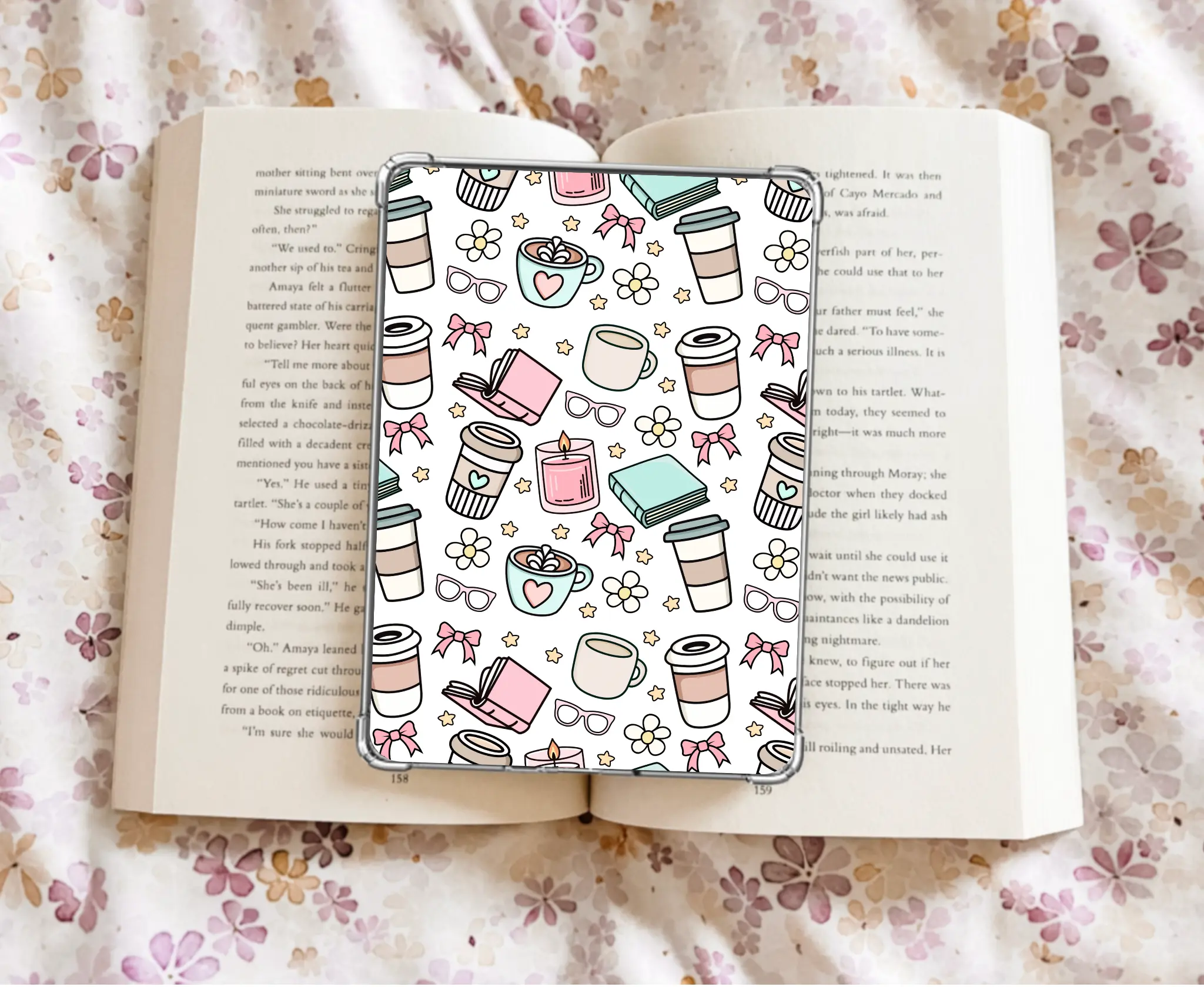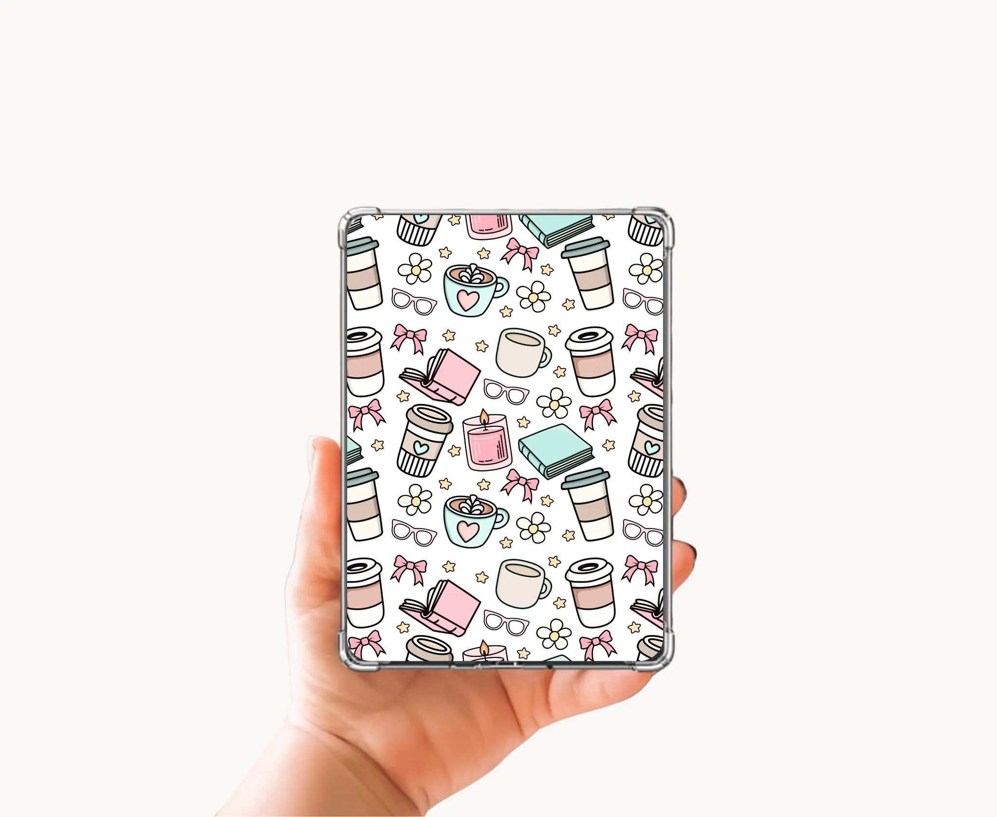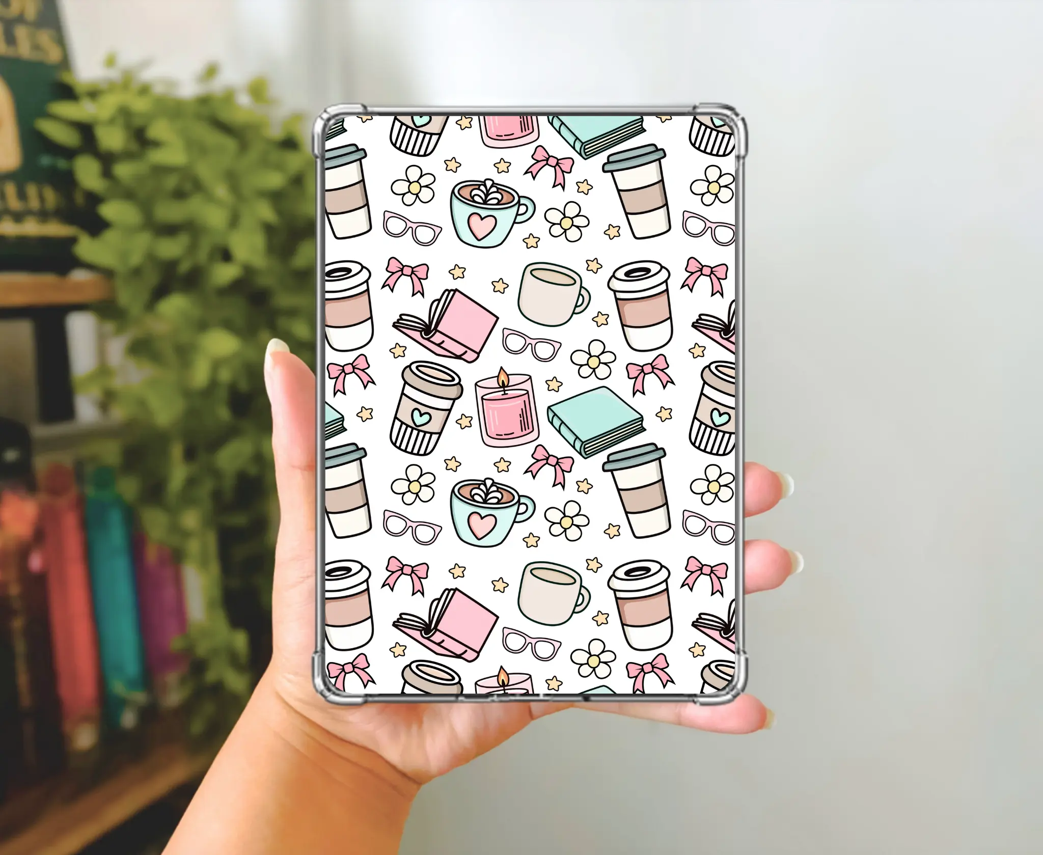 Elevate your e-reader's look with our charming "Cozy Cups" card stock insert. This handmade design fits perfectly inside a clear case, covering the back of your e-reader. It's crafted with precision, ensuring a seamless fit. Add a touch of personality to your device with this unique insert. Clear case not included.