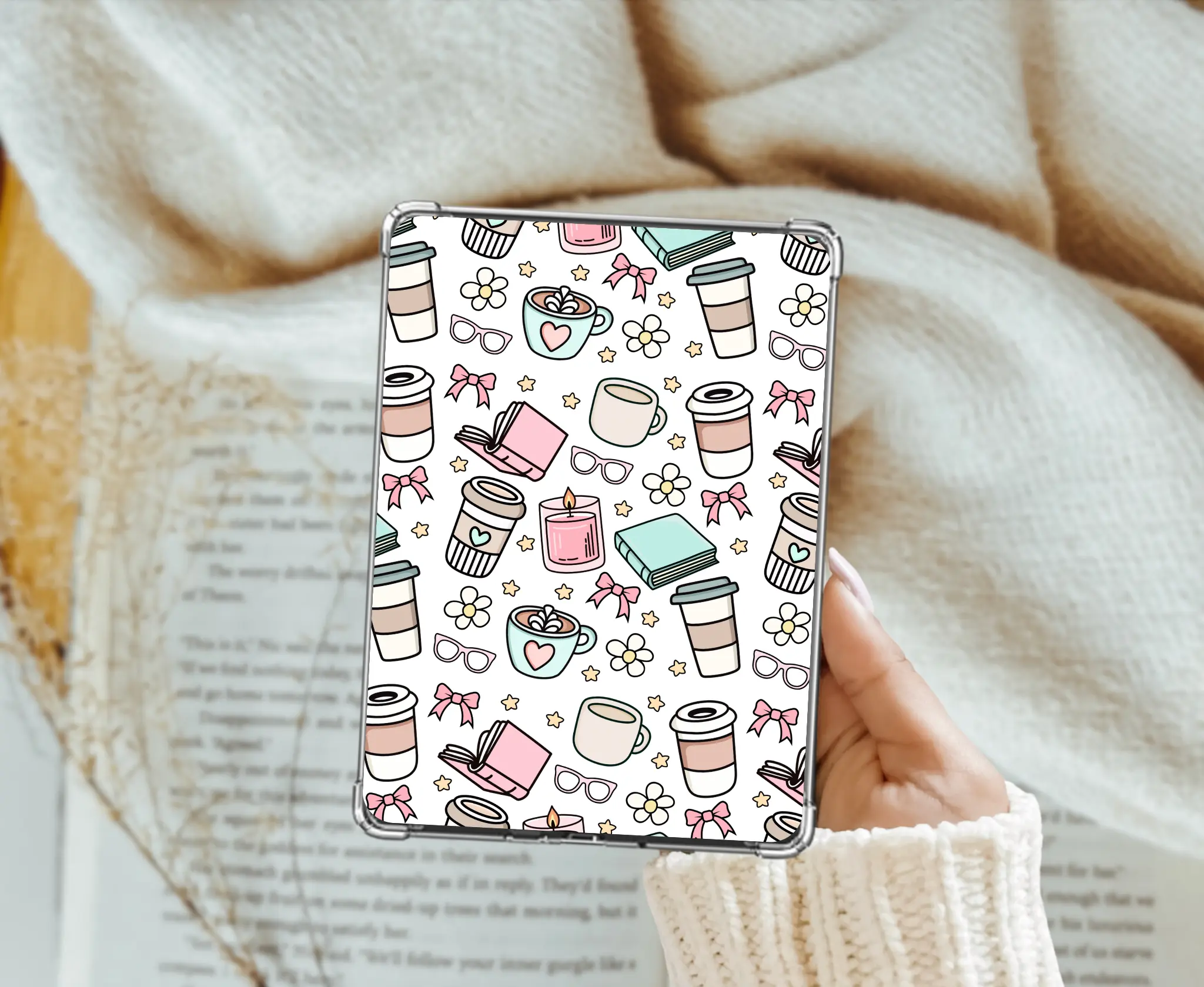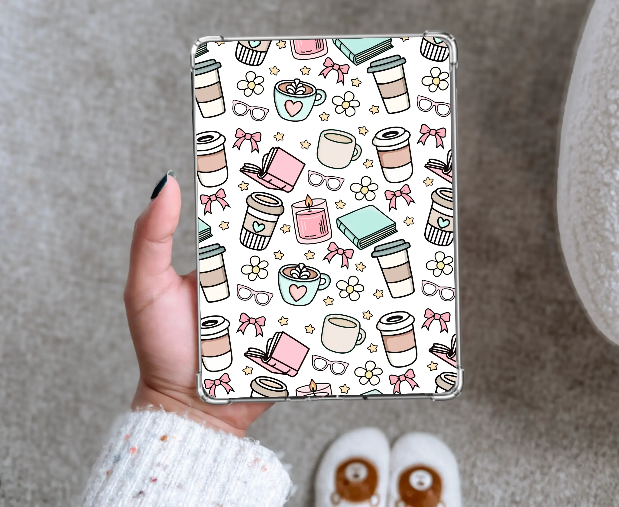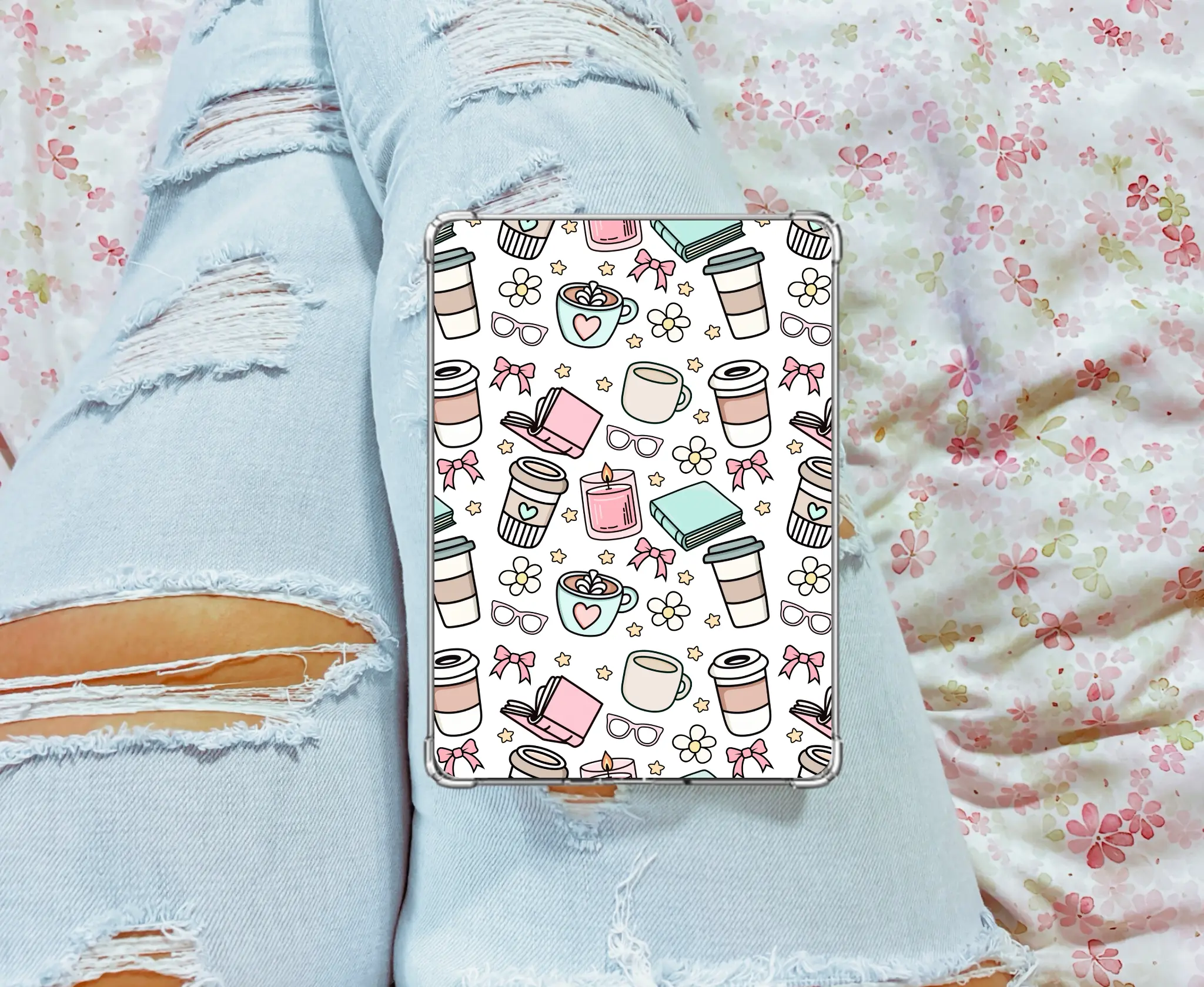 Elevate your e-reader's look with our charming "Cozy Cups" card stock insert. This handmade design fits perfectly inside a clear case, covering the back of your e-reader. It's crafted with precision, ensuring a seamless fit. Add a touch of personality to your device with this unique insert. Clear case not included.
