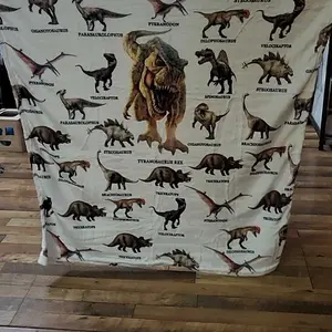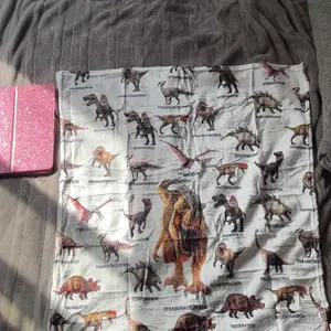 Although I did not receive the blanket I originally ordered I still love the one I got. Instead of dinosaurs I received a mushroom blanket instead. It’s still really cute and small enough for my granddaughter to use.