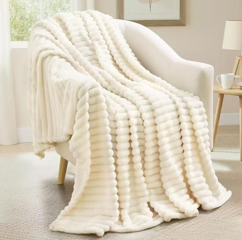 ·This throw blanket offers a lightweight and fuzzy texture, perfect for adding coziness to your bed. 🛏️