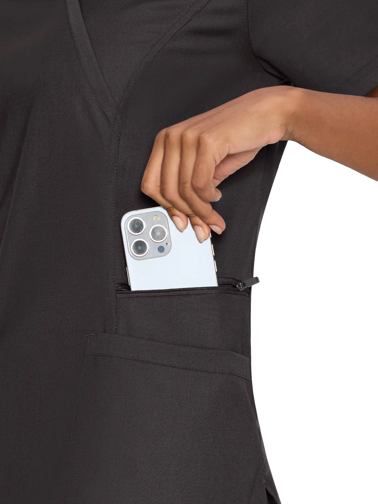 I absolutely love these scrubs. I love the top. The top has two pockets, but within those pockets, there’s like a little extra pocket that has a zipper, which I really do love. One thing the colors do bleeds of course wash these separately from scubs separately.