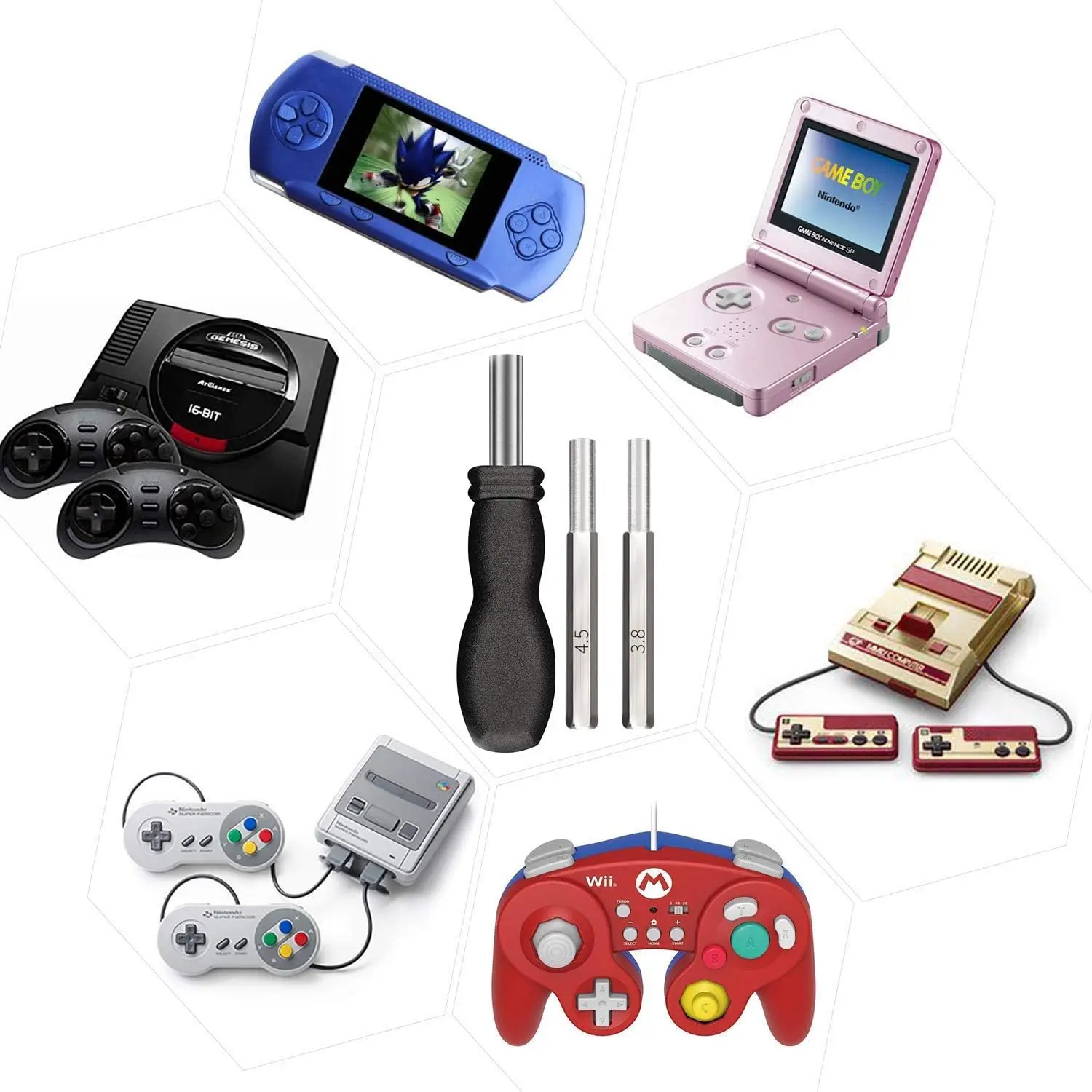 CR2032 Button Cell Battery, 5 Pack CR2032 Batteries with Tabs Bundled with 3.8 mm & 4.5 mm Security Screwdriver Game Bit Tool Set for NES, SNES and N64 Games - Batteries Individually Package