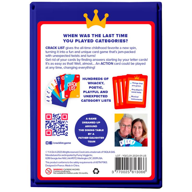 😂 Crack List is a fast, fun, simple card game. Accessible to all generations: everyone has the chance to find answers and walk away a winner. Lots of laughs guaranteed.