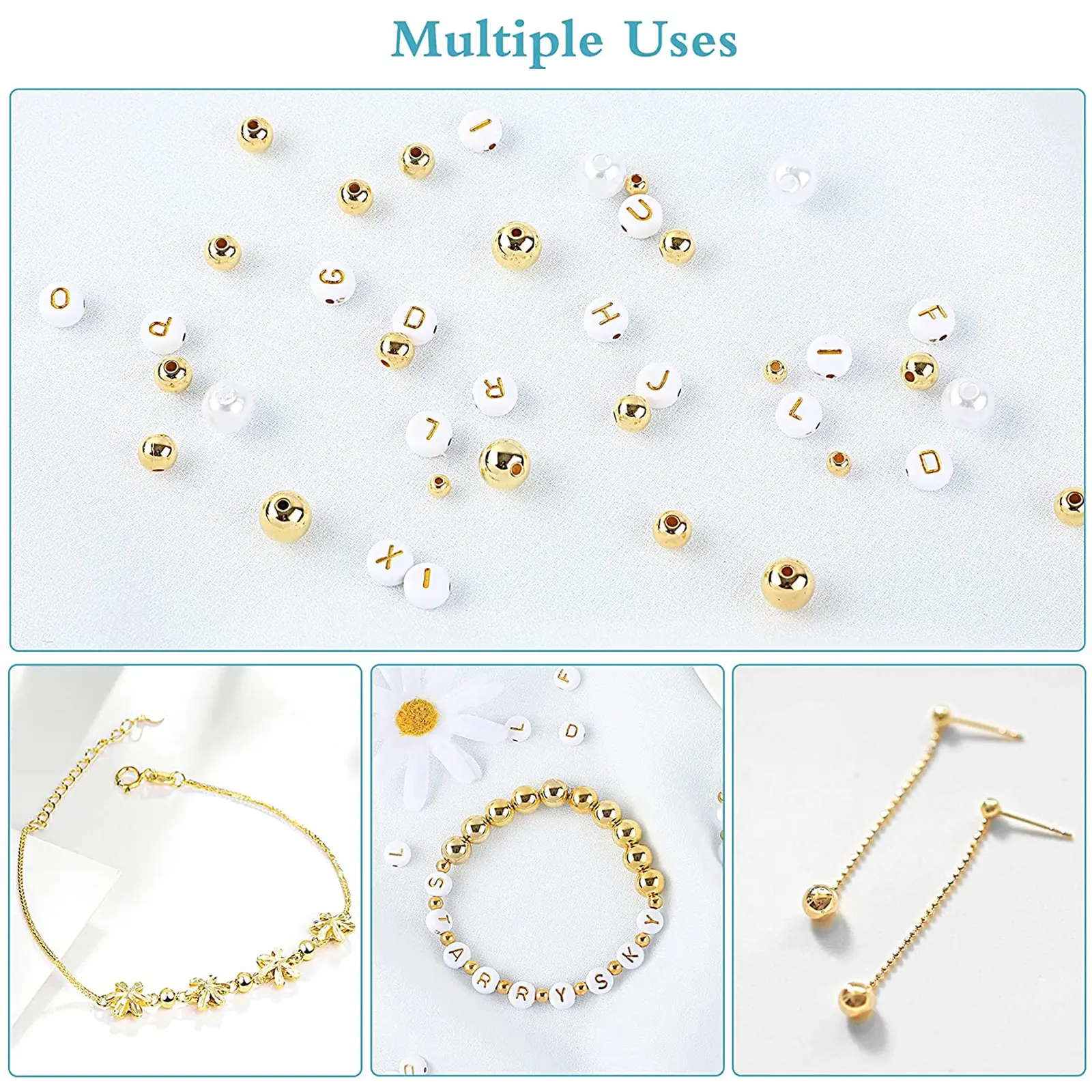 for Ideal Gift Supplies: You can use these round spacer beads, letter alphabet beads and white pearls beads to create personalized word pearl bracelets.