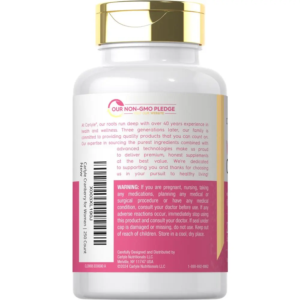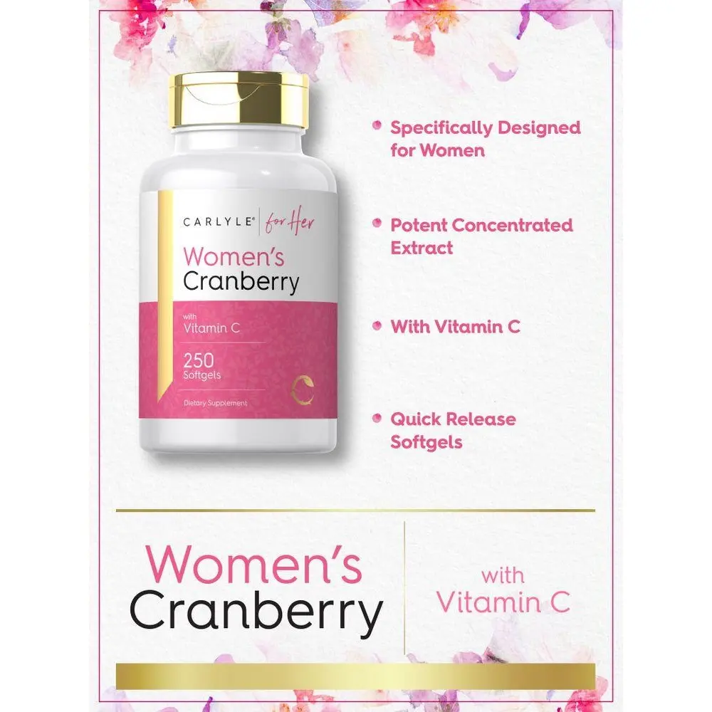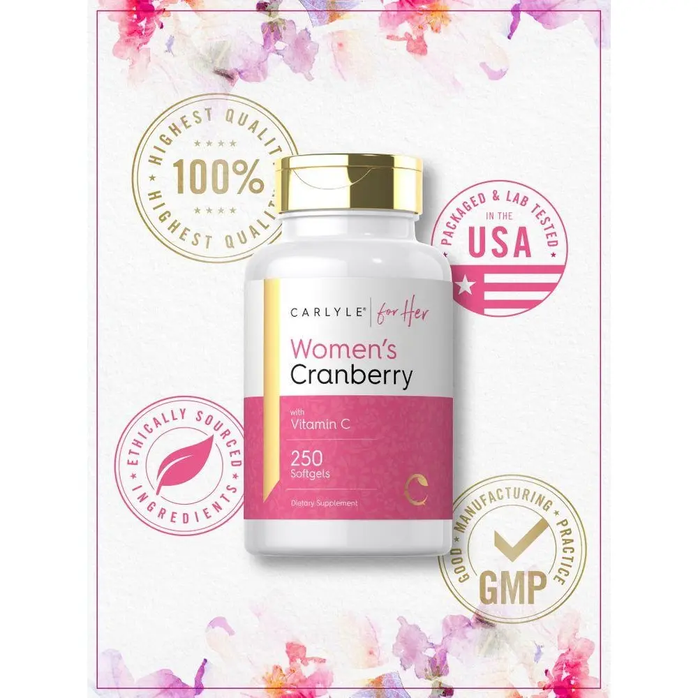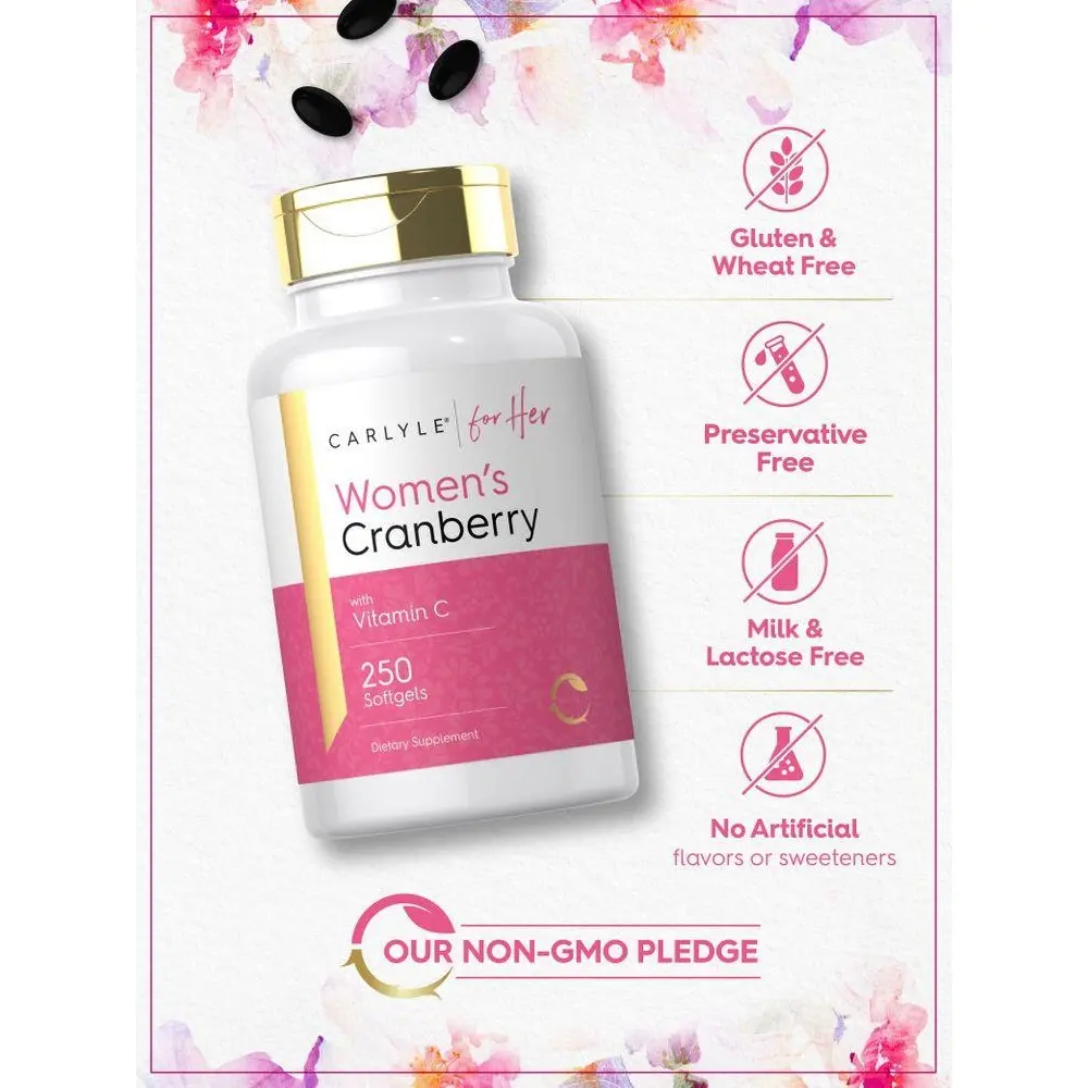 5. Carlyle Cranberry Pills For Women | 250 Softgels | Supplement with Vitamin C | Non-GMO, Gluten Free | For Her