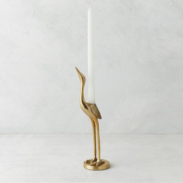 Z Gallerie Gold Crane Taper Holder Elegant Aluminium Finish 3.2x3.2x12.6 Inches for Mantel Shelf or Tabletop Vintage Candle Stand Room Decor Accessories Ornaments