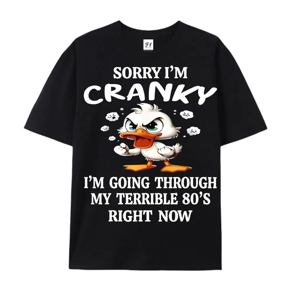 Cranky Duck Graphic Tee | Sorry I'm Cranky Outfit | Terrible 60s Funny T-Shirt | Oversized Cotton Comfort | Cute Fashion Gift for Her/Him | Valentine's Day & Birthday Present for Family & Friends