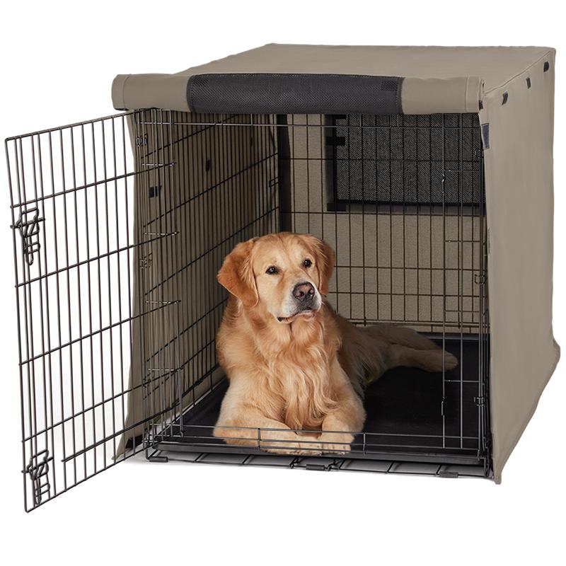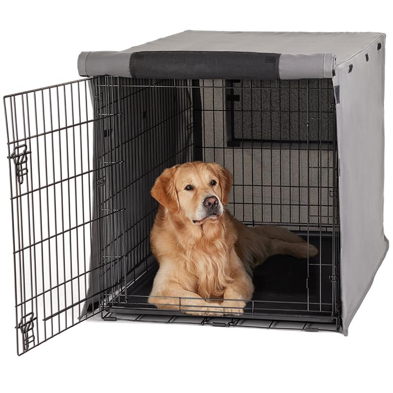 STAYS IN PLACE: Hook and loop fasteners at seams close crate cover; additional hook at loop fastener at the bottom corners help secure cover to crate; cover sizing aligns with standard size crates