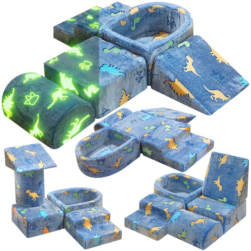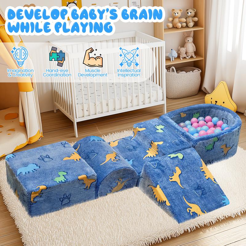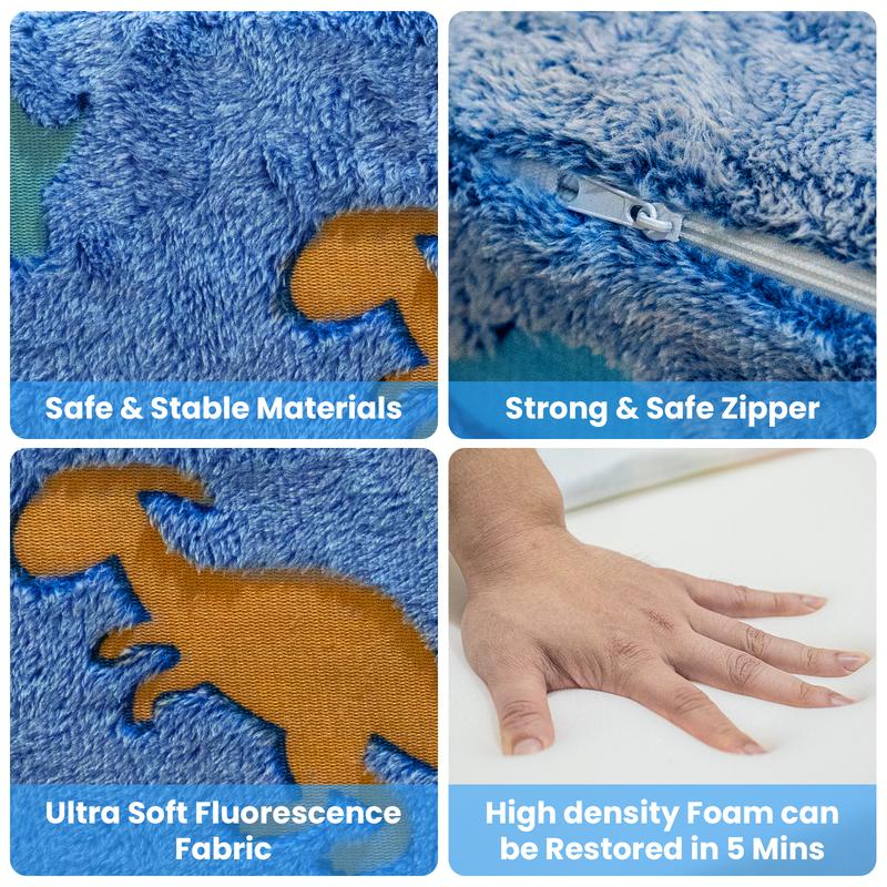 Support your child's physical development with the Lamerge Dinosaur Themed Crawling Play Module! Designed for kids aged 3 and up, this interactive play module features soft foam cushioning, providing a safe and comfortable area for crawling and exploring. The glow-in-the-dark dinosaur patterns add an exciting twist to playtime, making it even more fun and magical.