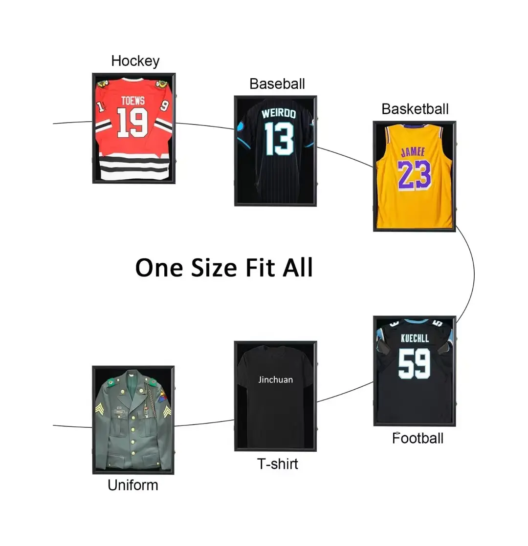 ONE SIZE FITS ALL & PERFECT GIFTMeasuring 31.25" × 23.25" × 1.5", this large frame fits jerseys from all sports — baseball, basketball, football, soccer, hockey, and more. It also works as a shadow box for military uniforms and precious memorabilia, making it the ideal gift for any sports fan.