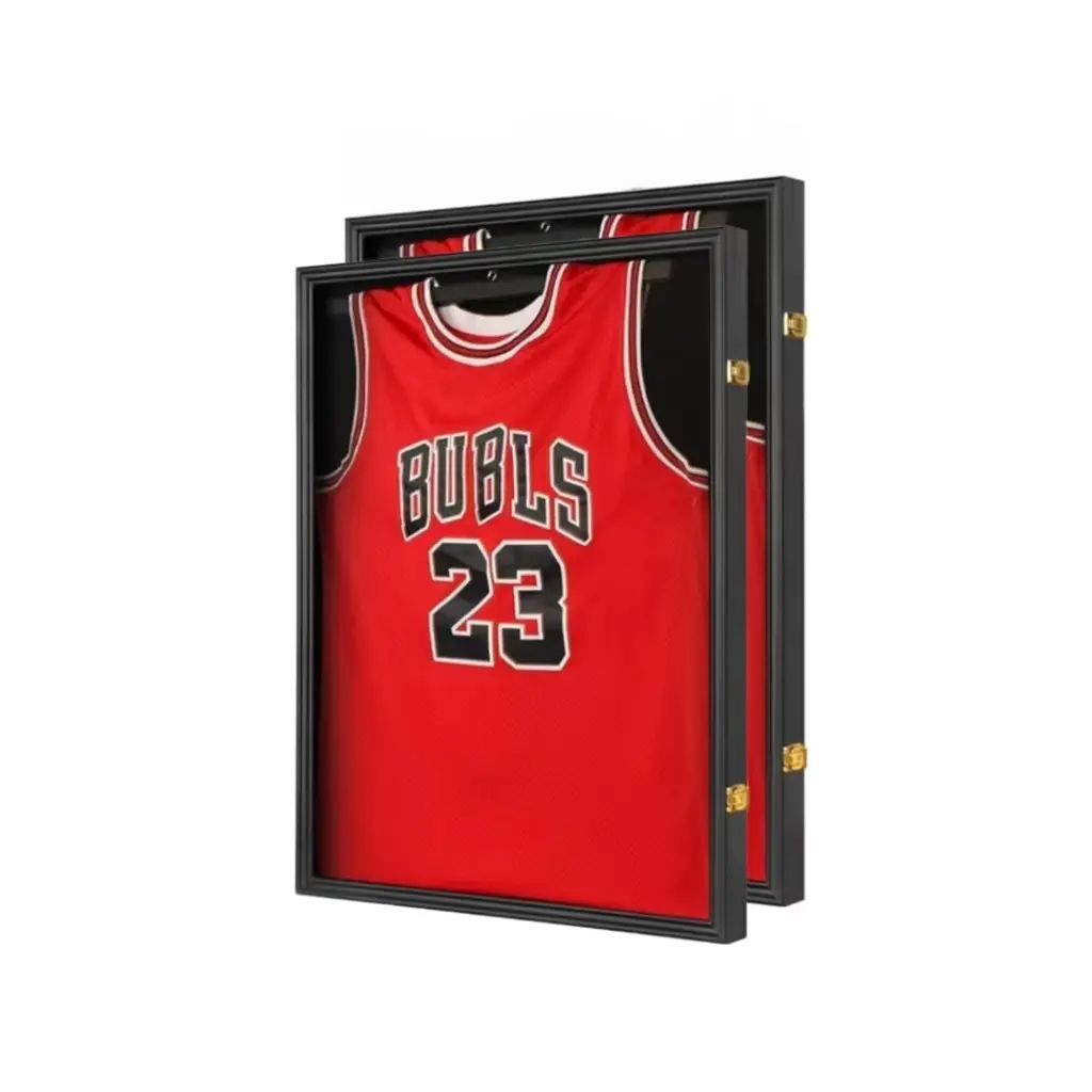 PROTECT YOUR PRIZED POSSESSIONSOur Jinchuan acrylic panels are made of Grade A acrylic that won’t yellow over time, providing ultra-clear viewing with 92% transparency. Boasting 98% UV protection, your jersey will not fade when exposed to natural light. The frame is also equipped with 2 gold anti-theft locks for extra security.