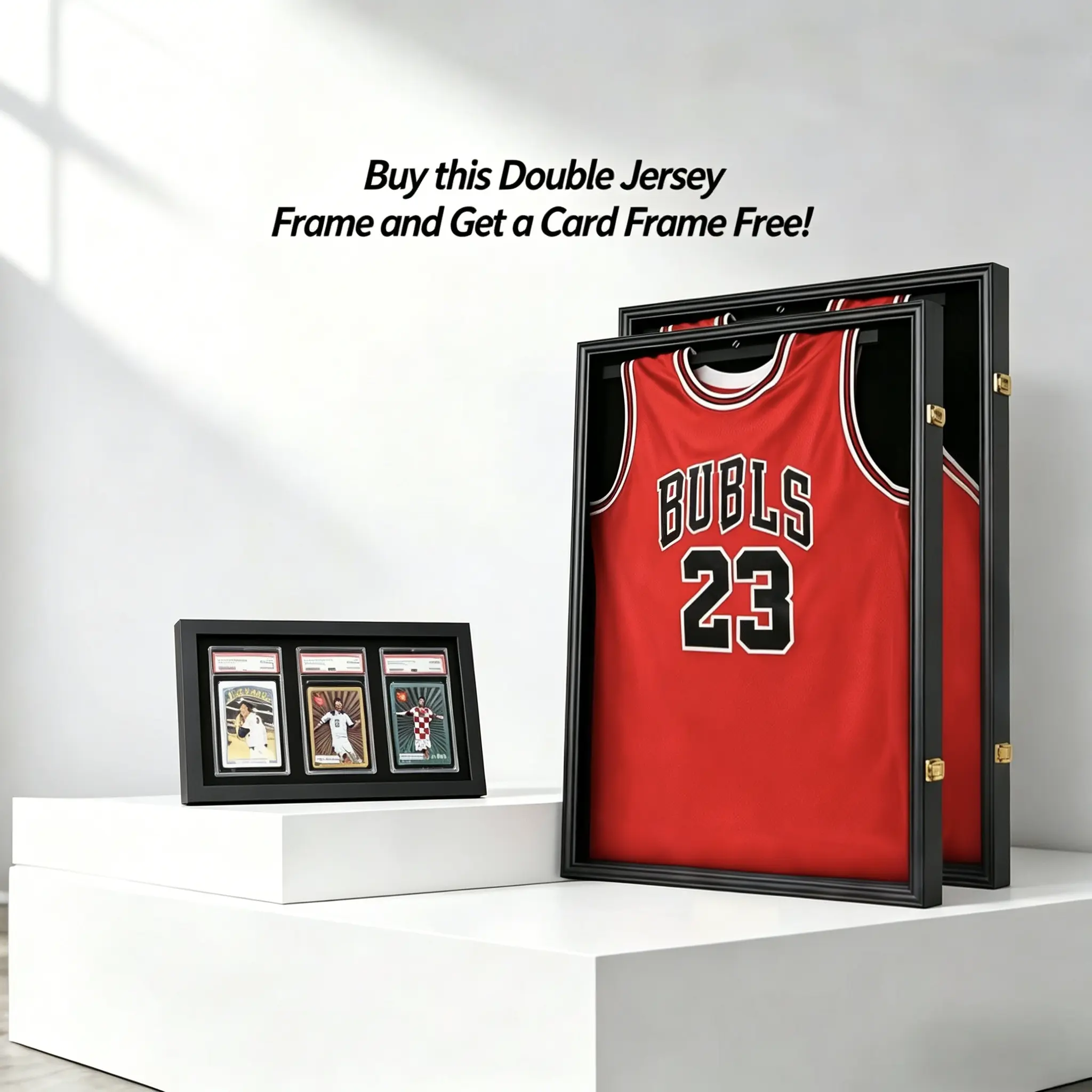 SPECIAL BUNDLE: FREE SPORTS CARD FRAME INCLUDED WITH EVERY JERSEY FRAME PURCHASE!Complete your sports collection display! Order this jersey frame now and get a bonus sports card display frame at no extra cost — the perfect way to showcase your signed jerseys and prized trading cards together.
