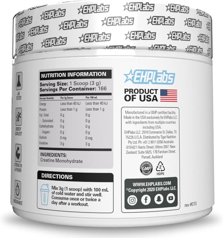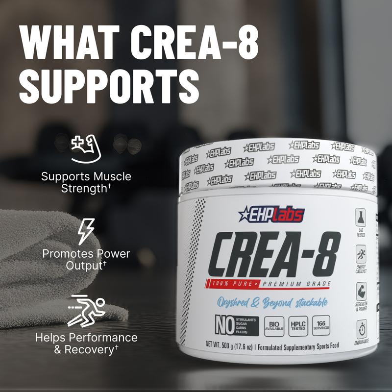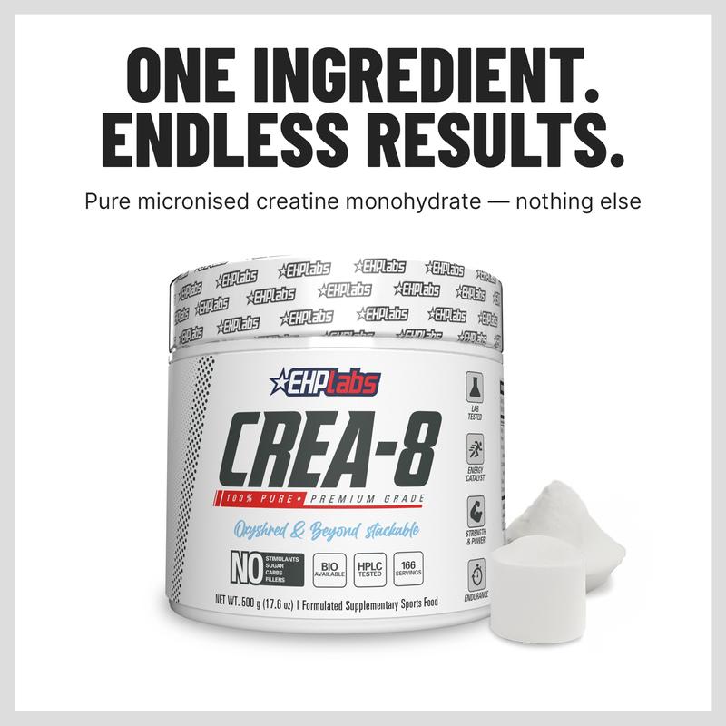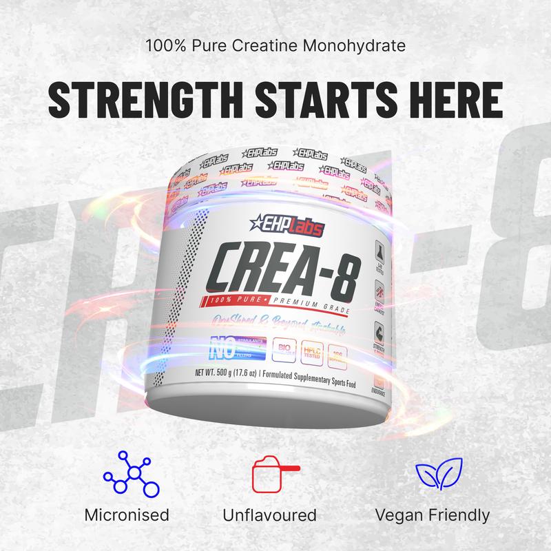 EHPlabs CREA-8 Micronized Creatine Monohydrate Powder - 100% Pure, Unflavored, Vegan-Friendly, 500g & 250g Tub Options for Strength, Endurance, and Recovery - Edible | New Year New Me