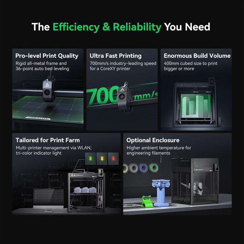 700mm/s max speed (500mm/s recommended) + 400mm³ build volume. Perfect for batch production or large single-piece models