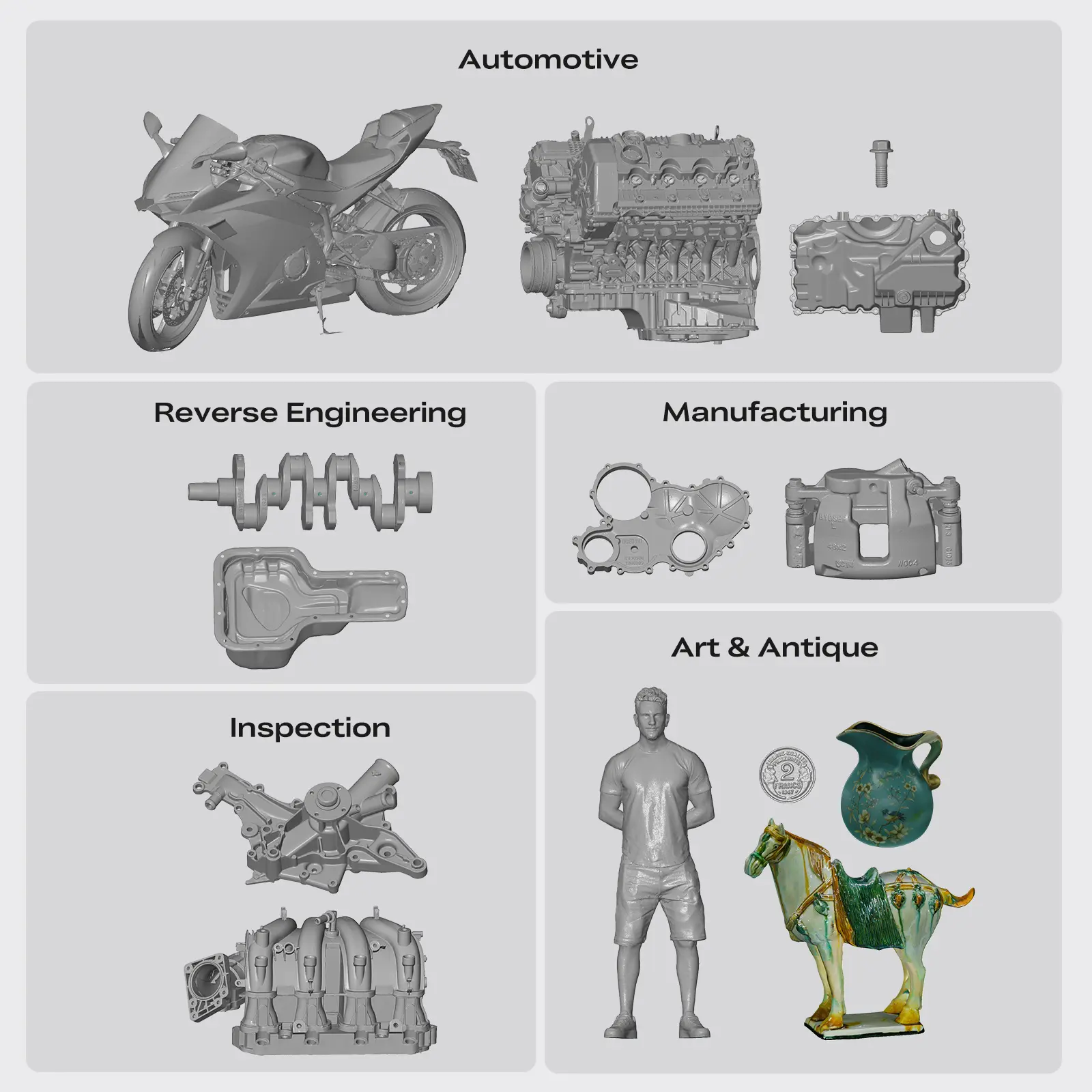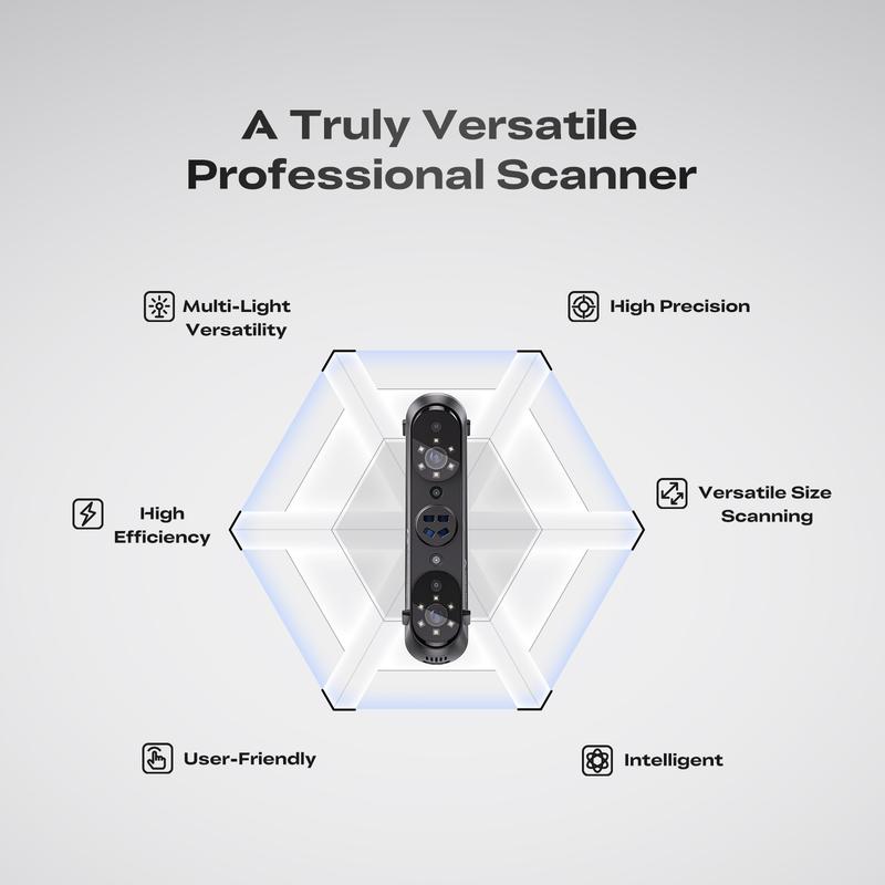·High Precision & Efficiency: 0.02mm + 0.08mm/m volumetric accuracy | 90 FPS speed + large FOV per frame for fast, precise scans.
