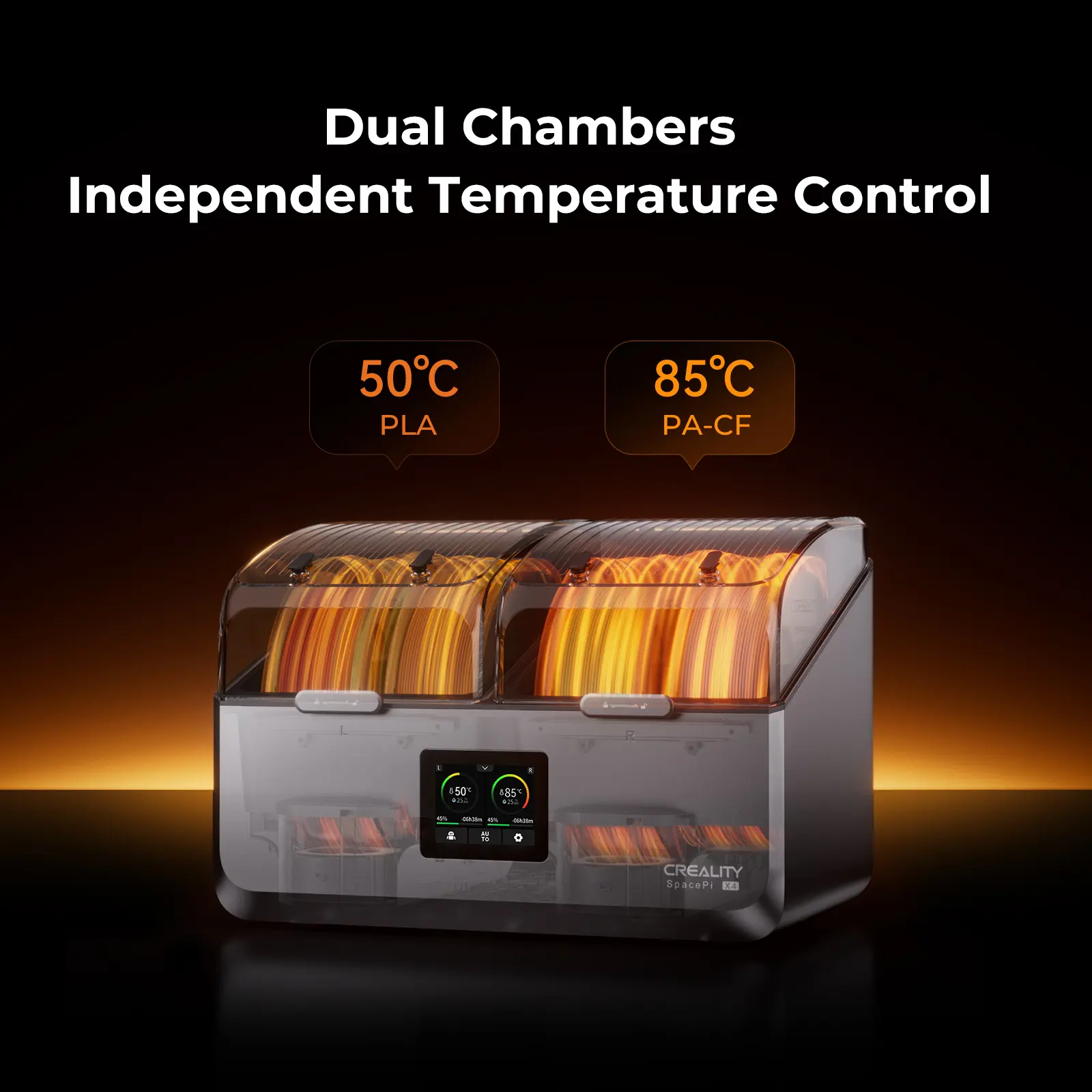 Easy setup and I love the automated drying. Set it and forget it. Dual chamber and individual control each side. Interior light let's you know when it is on and actively drying the filament.