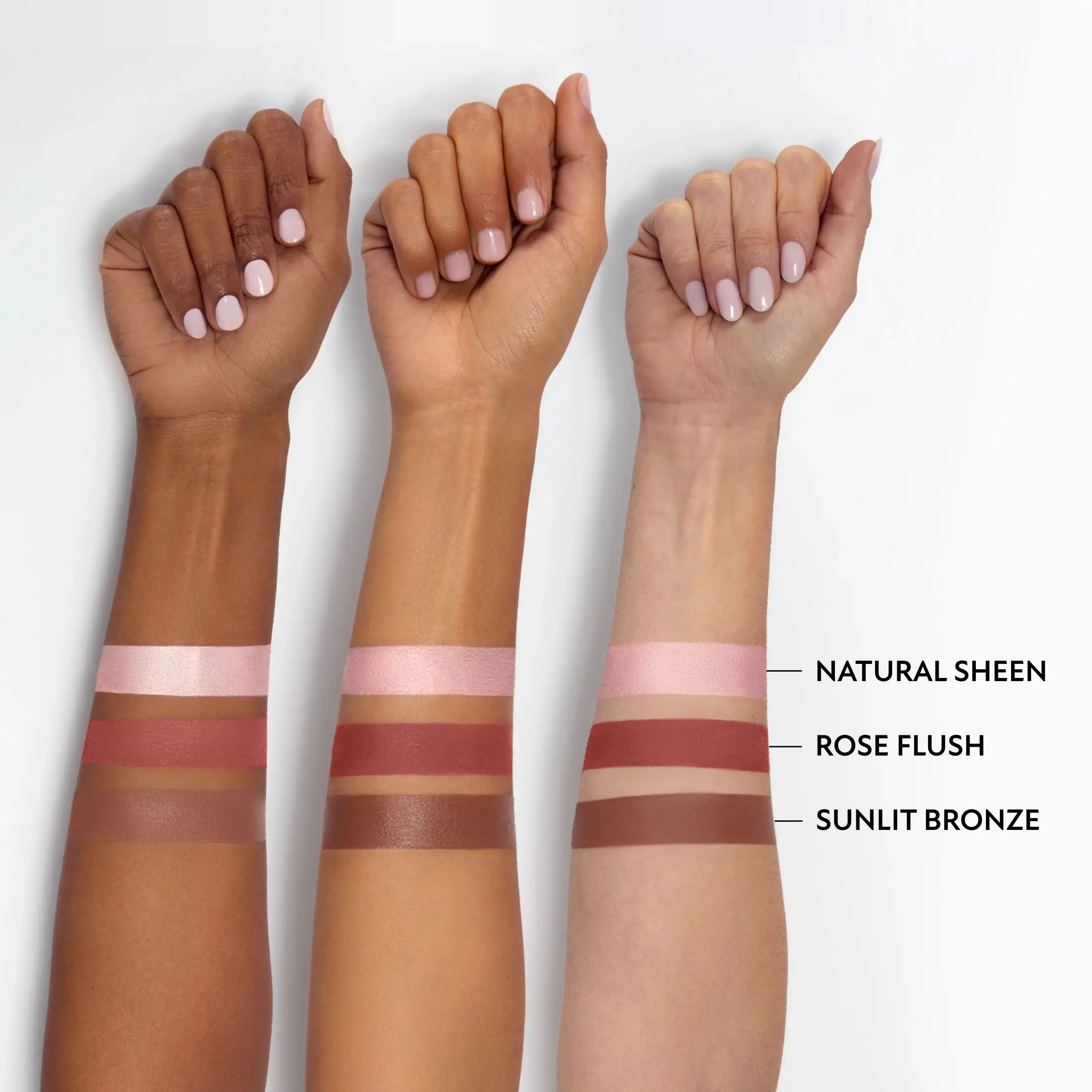 Mix and match our 3 universally flattering shades to enhance your features and streamline your routine. Use this versatile balm as a lip color, blush, bronzer, contour, highlighter, and cream eye shadow to instantly achieve a naturally flawless look.