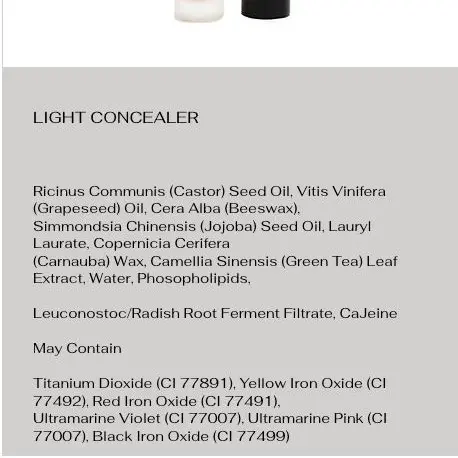 Enriched with castor, grapeseed, and jojoba oils, along with beeswax and carnauba wax, this concealer glides smoothly while nourishing the skin and providing comfortable, long-lasting wear. Green tea extract and radish root ferment help support skin health, while gentle pigments, including titanium dioxide, ultramarine shades, and iron oxides, offer buildable coverage with a natural finish.