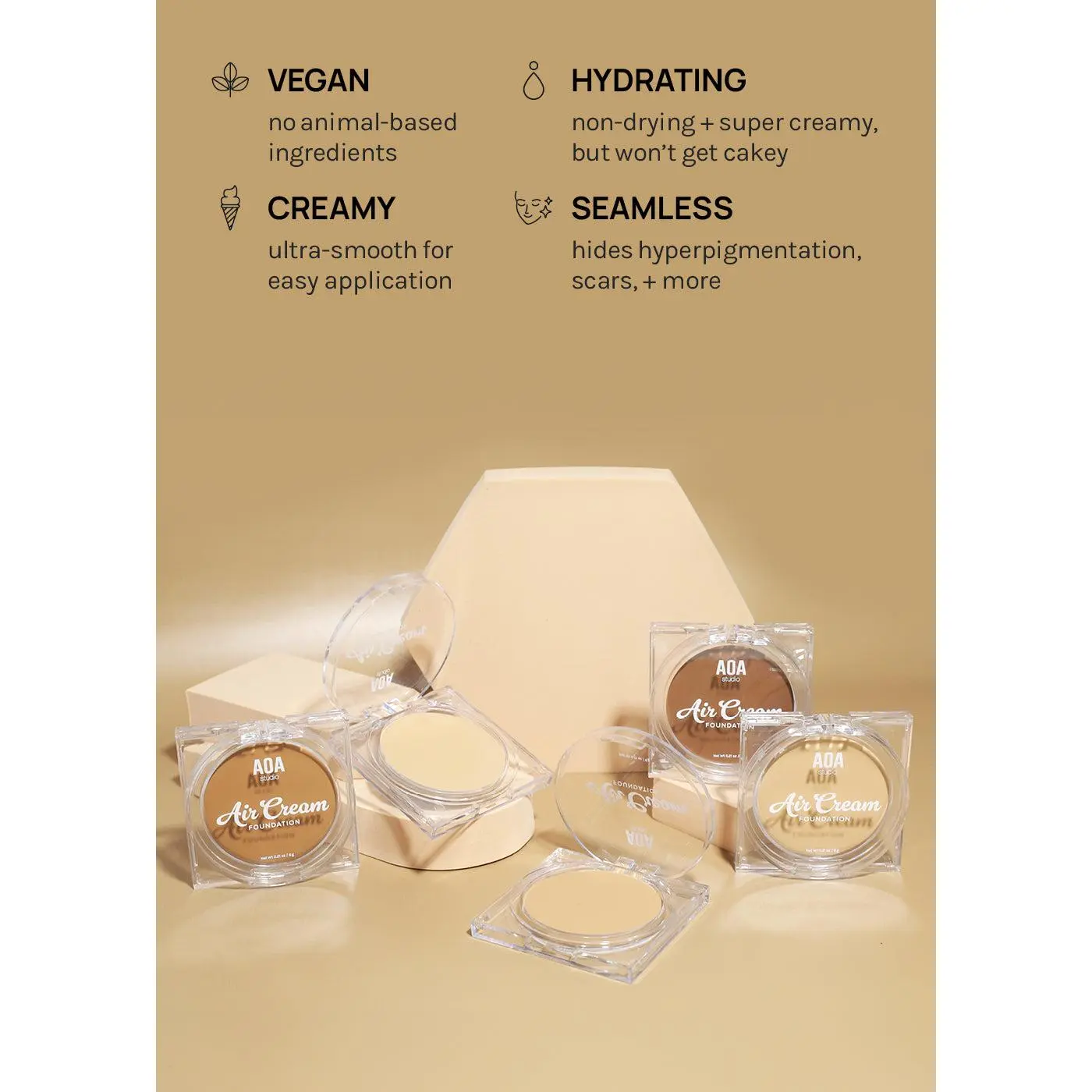 Oh wow I cannot say enough about this air cream foundation highly highly recommend it specially aging women like me flawless does not settle in the fine lines and wrinkles does not leave you dry very creamy very hydrating highly recommend