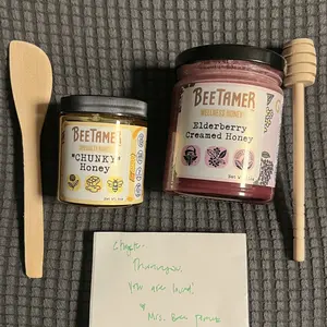 Wonderful experience! Thank you Bee Tamers! Received my order quickly and it even had a personal hand written thank you note. I haven’t tried it yet but I know it’s going to be delightful. Great to support a small “local” business. Will totally purchase from this business again.