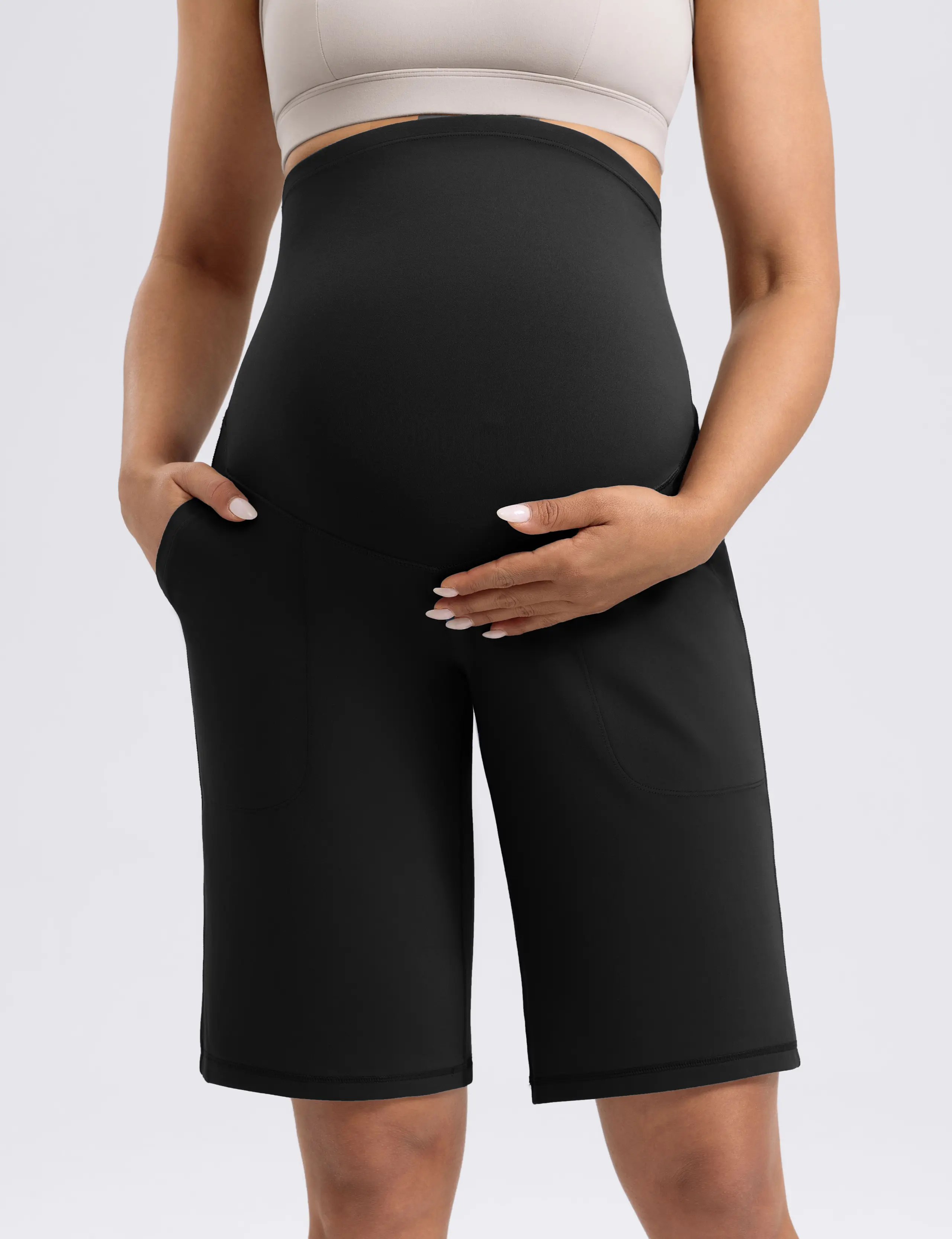 Perfect for Any Occasion: With their minimalist design, these maternity shorts are incredibly versatile. Dual side pockets hug the silhouette for a polished look that’s practical and chic. Dress them up or down for any occasion—whether it’s a workout session, a casual day out, or even a relaxed day at the office.