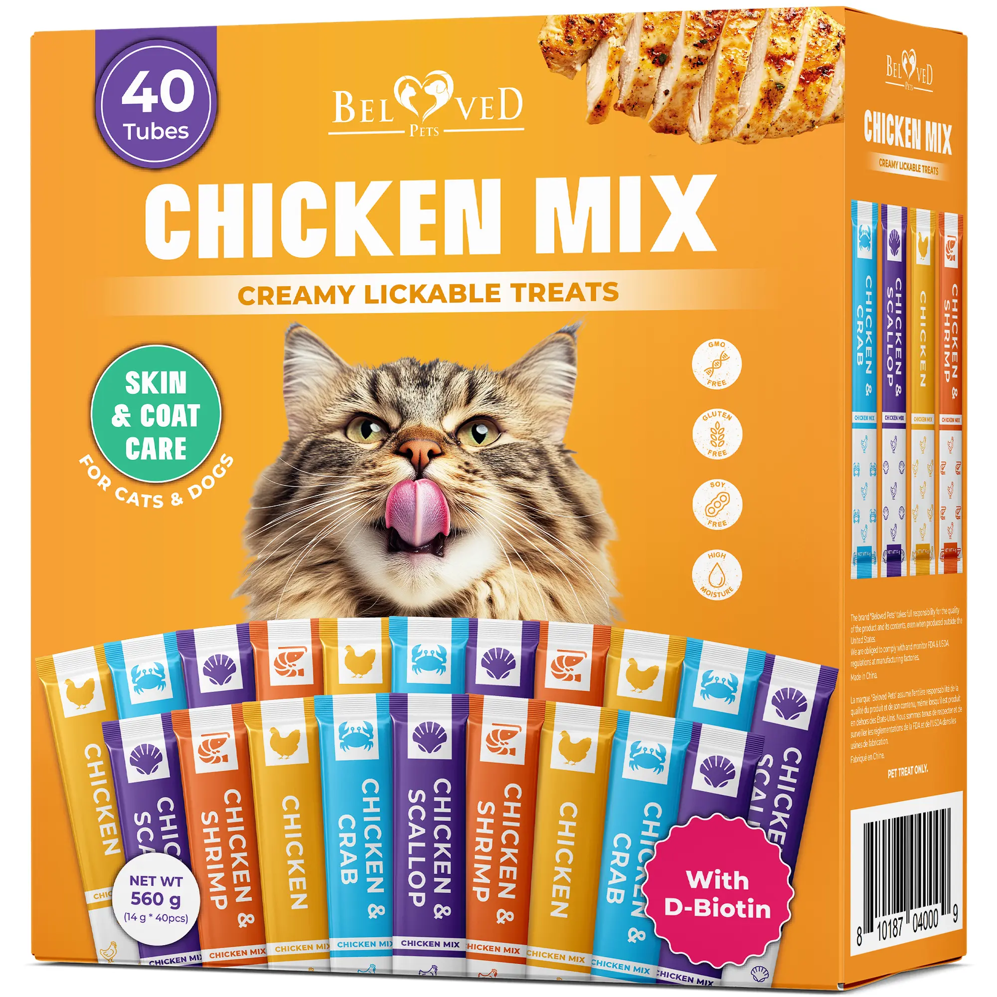 Replying to @Kylo the werewolf dog Yummy Chicken Mix Creamy treats By @Beloved Pets  🤗 PREMIUM DUAL MIX VARIETY: Irresistible combination of chicken and tuna-based lickable cat treats blended with delicious seafood flavors like salmon, crab, shrimp, scallop. Creamy snacks your pets will crave, bulk pack (40 sticks). URINARY & SKIN CARE SUPPORT: Enhanced with cranberry and D-Biotin multivitamins to provide dual support—promoting healthy skin, shiny coats, and optimal urinary tract health. Ideal nutritious squeeze tubes. HYDRATION & LOW CALORIE: Moisture-rich, low-calorie squeezable cat snacks to keep your pets hydrated. Delicious puree tubes and liquid treats that cats and small dogs eagerly lick up, better than premium golosinas para gatos. FUN INTERACTIVE FEEDING: Convenient squeeze tubes ideal for interactive hand-feeding, medication disguise, or mixing into daily meals. Each lick becomes a joyful bonding moment, irresistible like cat crack. CLEAN & NATURAL FORMULA: Non-GMO, grain-free, gluten-free, soy-free, no artificial additives or fillers. Pure cat snacks with creamy paste consistency, nutritious and enjoyable, as fresh and healthy as juice. Good For cats & Small Dogs Please Click on link Below Video if interested in Purchasing.  #fyp #Belovedpets  #Cattreats #squeezeupslickabletreats #tiktokshopcatsupplies