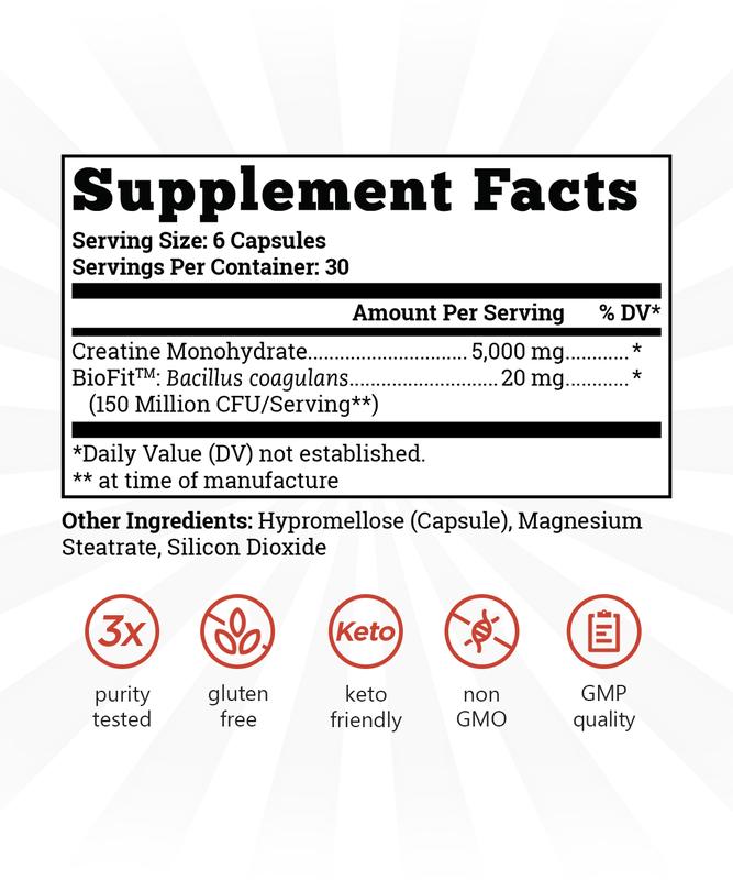 Classic Creatine Capsules with BioFit Probiotics - Fitness Healthcare Supplement