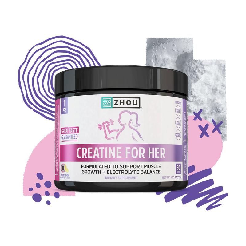 Meet your new training partner. Zhou Creatine for Her blends creatine, electrolytes, and L-carnitine for a whole-body approach to workout support—all in an easy-to-mix powder.* Designed to power your workouts and your wellness routine.