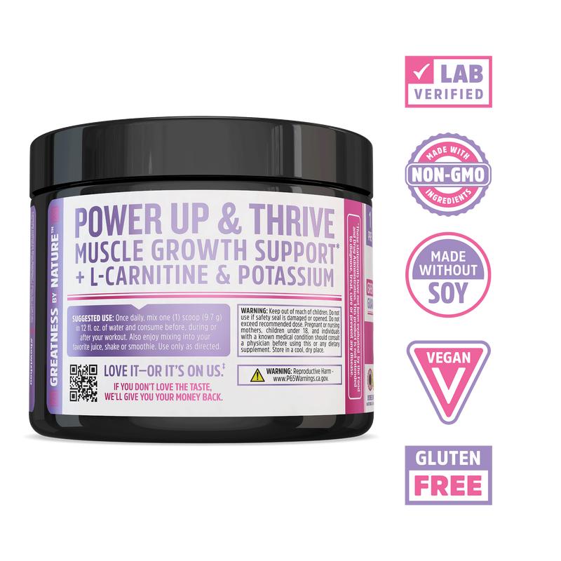 Designed for easy mixing to support your workout routine Includes potassium to support electrolyte balance during workouts Contains L-carnitine and potassium to aid in heart health Supports muscle growth and enhances exercise performance with creatine Lab-verified, vegan, gluten-free, and non-GMO