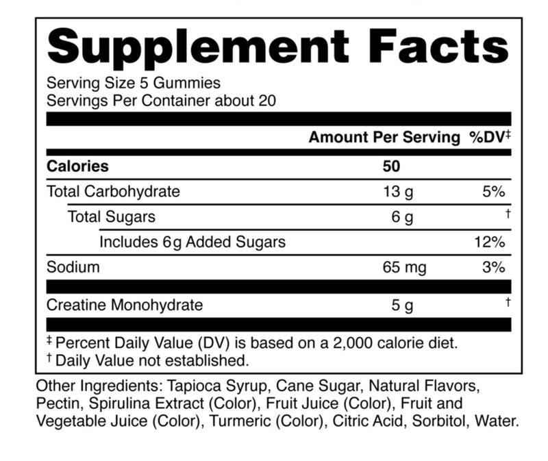 4 delicious gummies fuel muscle growth, recovery, and strength with every chew.* And we're not talking about flavorless chalk. Our gummies are flavored with superfoods like Spirulina, Beet Juice, Beta Carotene and real fruit flavors