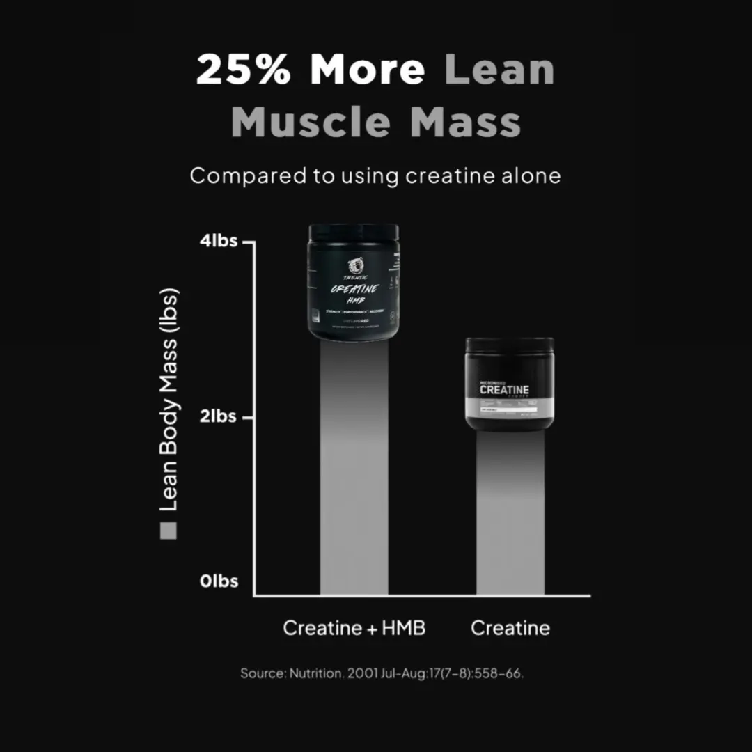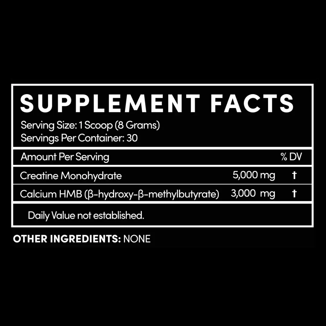 Thentic's Creatine Monohydrate + HMB features 5,000 mg of pure creatine monohydrate plus 3,000mg of HMB. Creatine Monohydrate remains the gold standard of creatine supplements, with hundreds of studies proving its effectiveness in athletes, fitness enthusiast, and gym-goers alike. Our Creatine + HMB mixes easily in virtually any liquid and can be stacked with your favorite powder supplements, such as pre-workout, BCAAs and electrolytes.