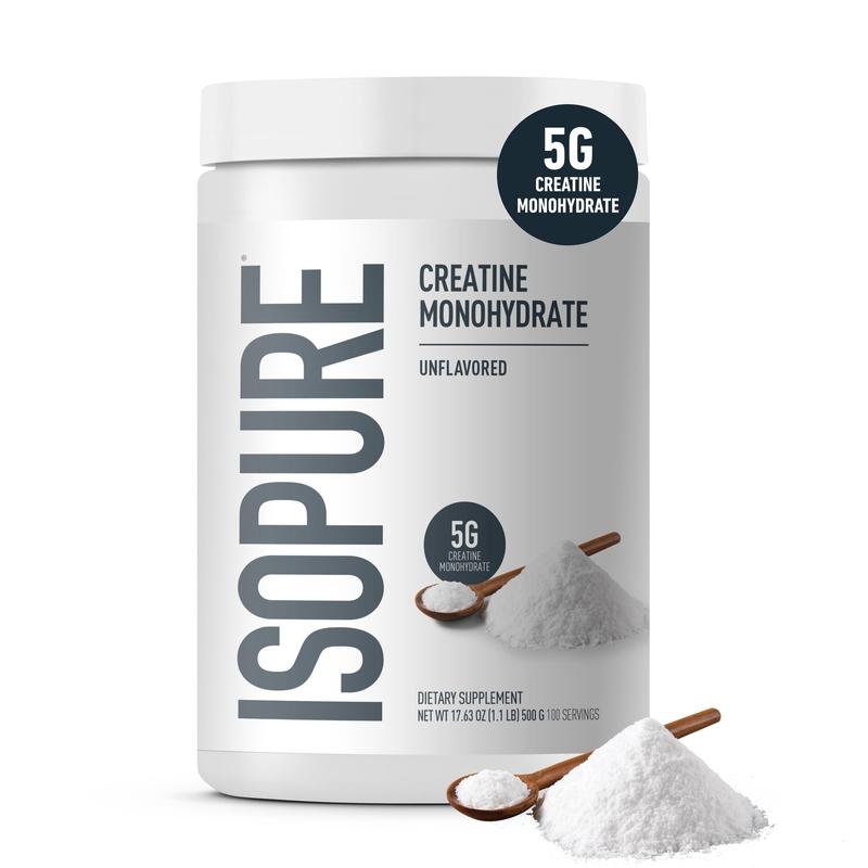 Isopure Creatine Monohydrate powder has no calories, added sugars or fillers. Highly researched, Creatine Monohydrate has been shown to support muscle recovery, strength, and power when combined with high-intensity activities.* It's unflavored and perfect for stacking into your post-workout protein shake or favorite flavored beverage. All Isopure products are manufactured from the highest quality raw materials, under strict supervision and in accordance with Good Manufacturing Practices. Extensive quality control procedures ensure proper purity, dissolution and potency.