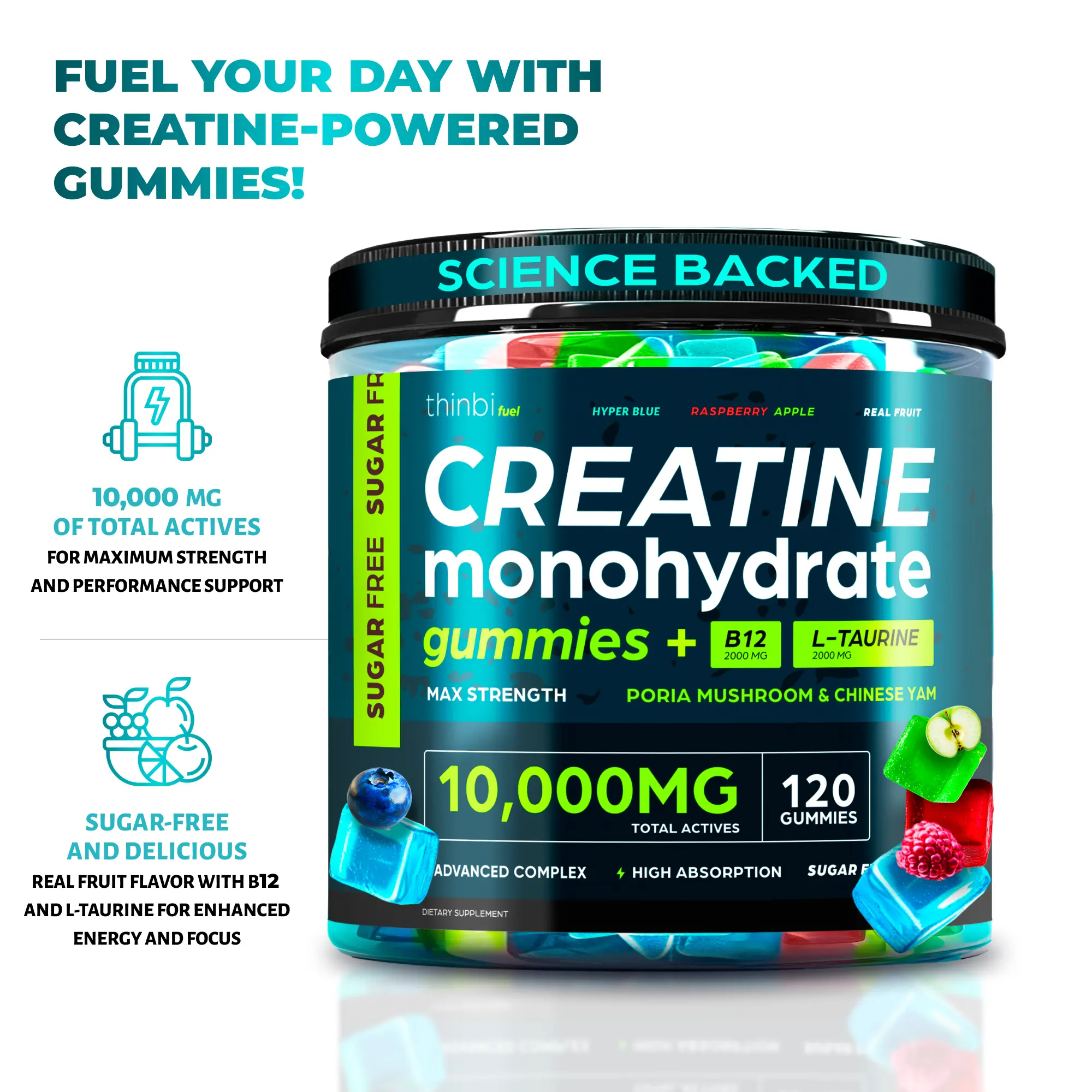 5. Thinbi Creatine Monohydrate Gummies 10000mg with L-Taurine & Vitamin B12 120 Sugar-Free Gummies for Muscle Strength & Energy Boost