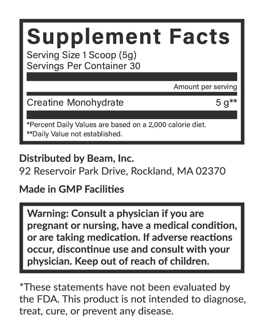 What’s in the Box: 1 x Beam Creatine Monohydrate Powder, 30 Servings (Unflavored)