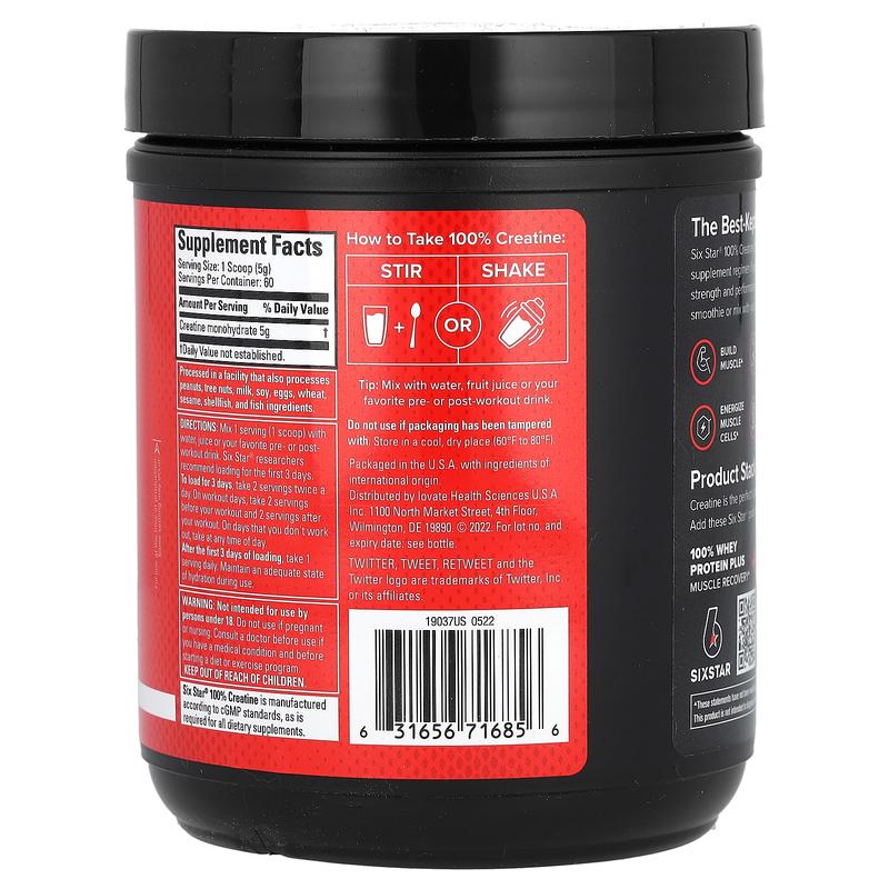 5. SIXSTAR 100% Creatine, Unflavored, 10.58 oz (300 g)