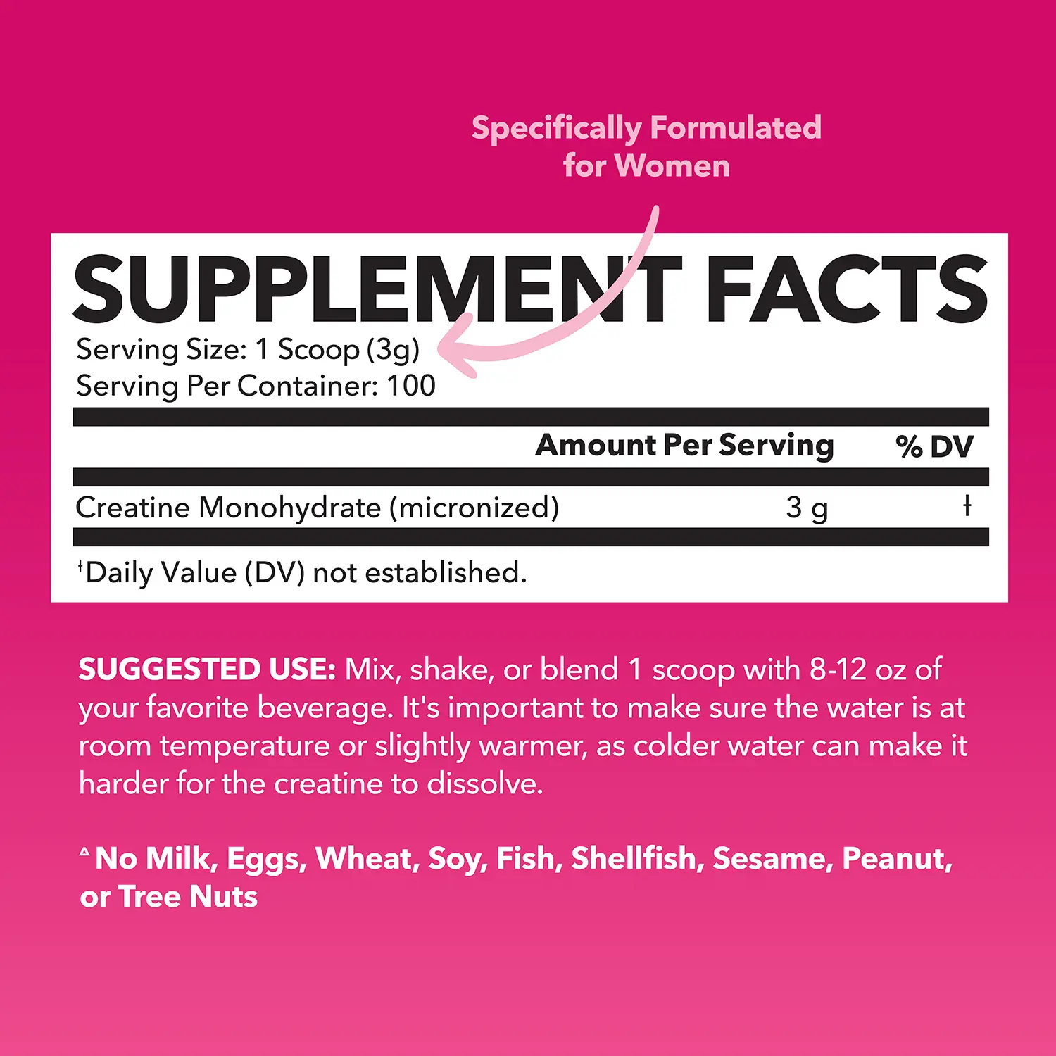 ¡Specifically Formulated for Women - Our creatine monohydrate for women is designed to meet the unique nutritional needs of active women, providing a convenient way to enhance performance during workouts and support post workout recovery.