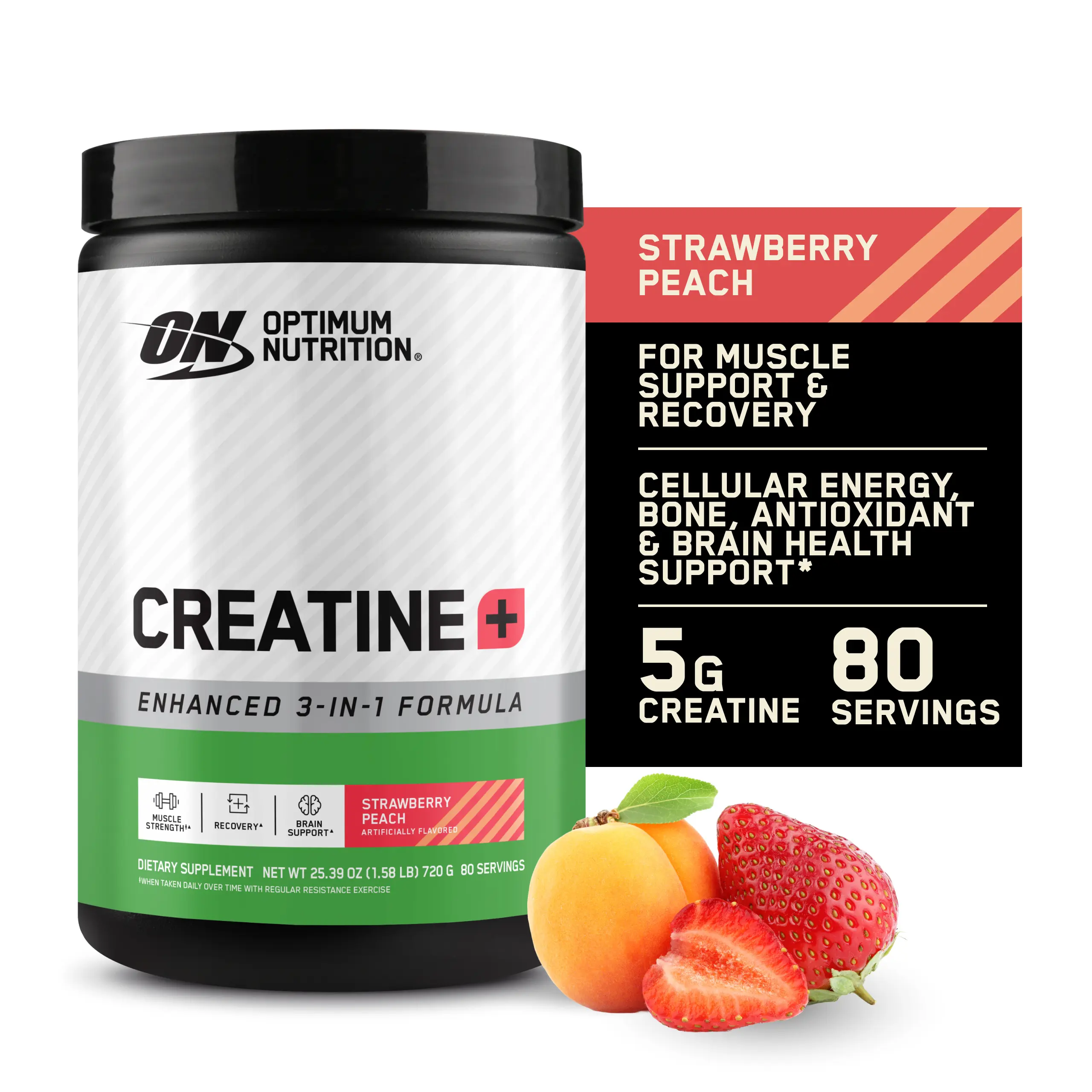 Optimum Nutrition Creatine [+] Powder Mix supports muscle strength and recovery with 5g of creatine monohydrate per serving. It also provides antioxidant, brain, bone, and cellular energy support with vitamins B, C, and D, making it ideal for active individuals seeking to elevate their nutrition.