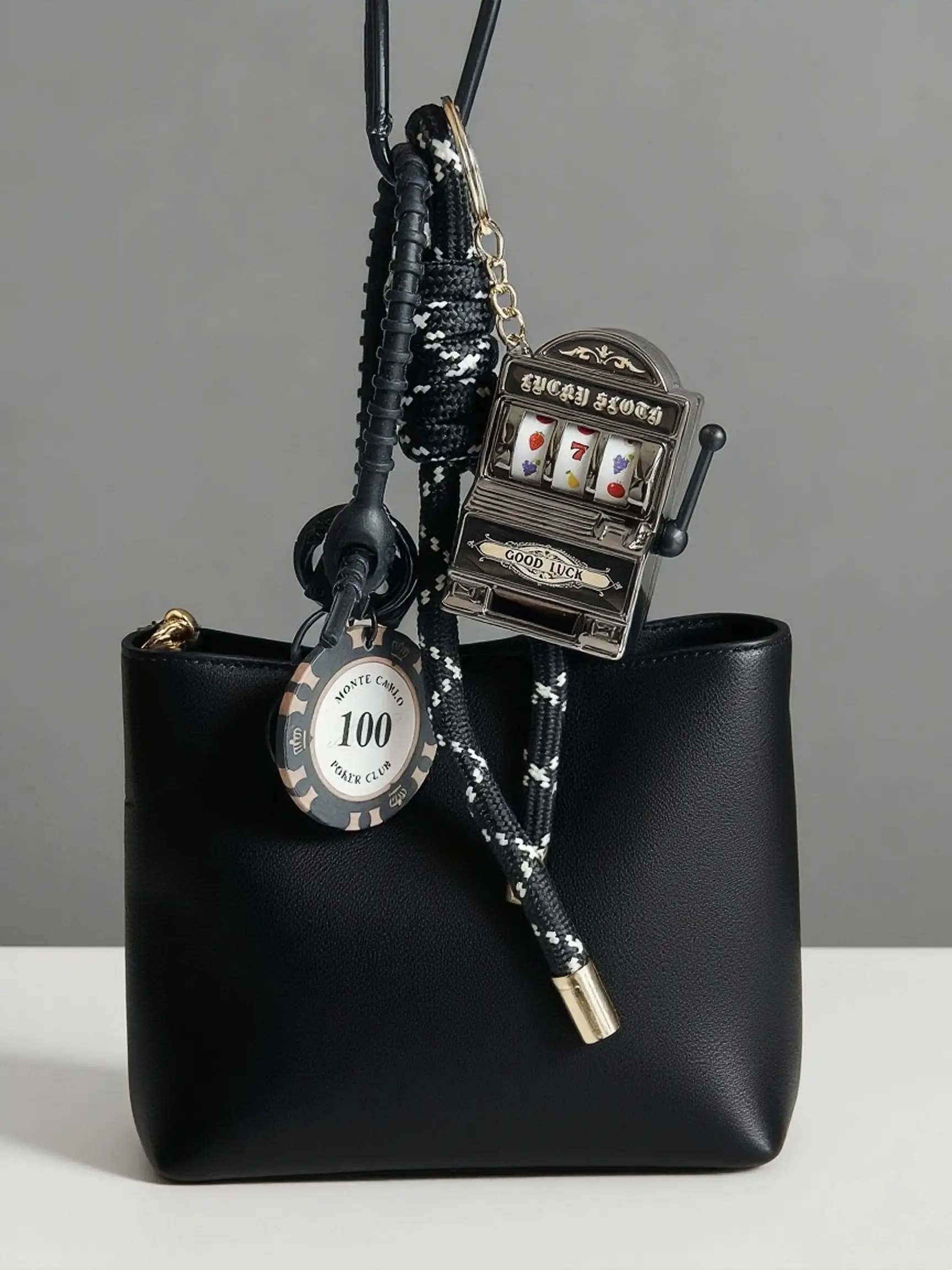 【Unique mini slot machine】: This bag charm features an eye-catching mini slot machine design, adding a playful touch to your accessories.