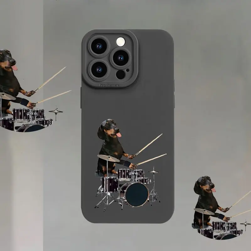 New Creative Drum Dog Pattern Phone Case, TPU Shockproof Full Protection Case, Suitable for iPhone 17/16/15/14/13/12/11 PRO MAX PLUS AIR E XS and PROMAX MINI, Ideal Gift for Friends and Family, MS1235