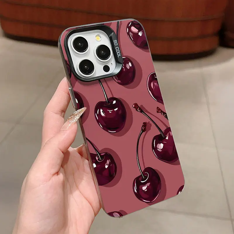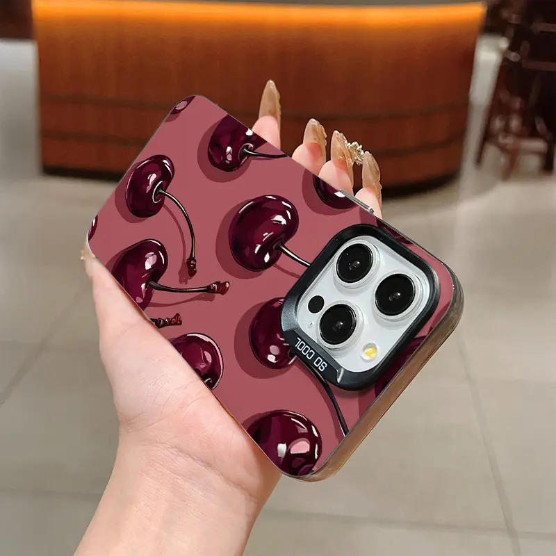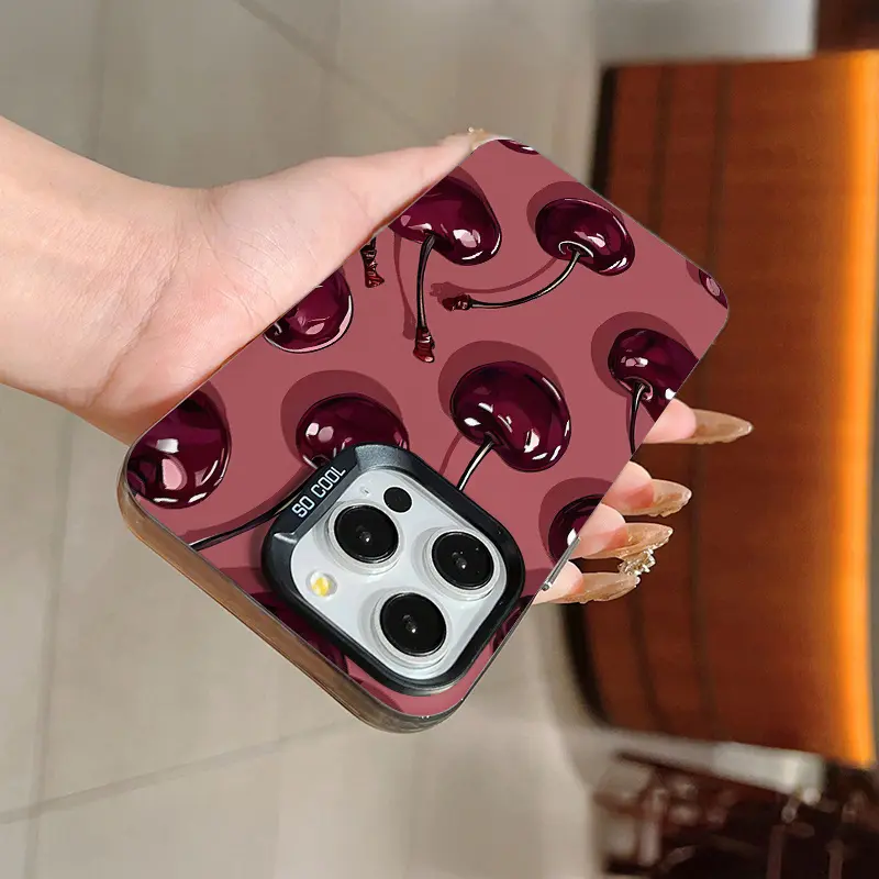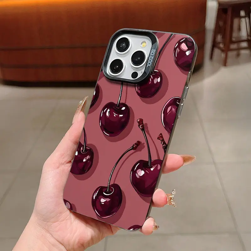 Creative graffiti cherry pattern, drop-proof and non-slip TPU large-aperture IMD phone case, compatible with iPhone 17, 16, 15, 14, 13, 12, 11, XS, X ,Samsung S25 S24 S23 S22 series and other models. Makes a great gift for friends or family.