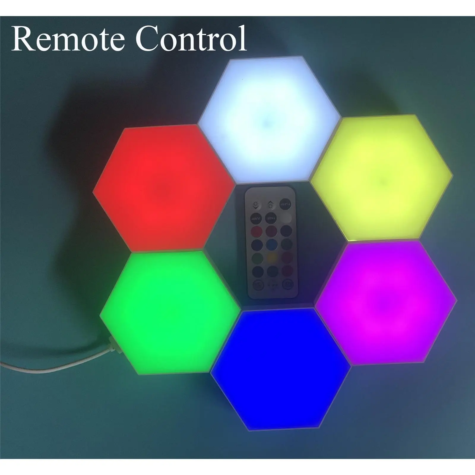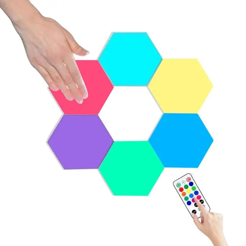 Image Description- Hexagon Wall Lights: Showcasing the modular touch control and remote control features.- DIY Assembly: Demonstrating the unique geometric design and DIY fun.- Versatile Use: Highlighting the wide range of applications in various settings.