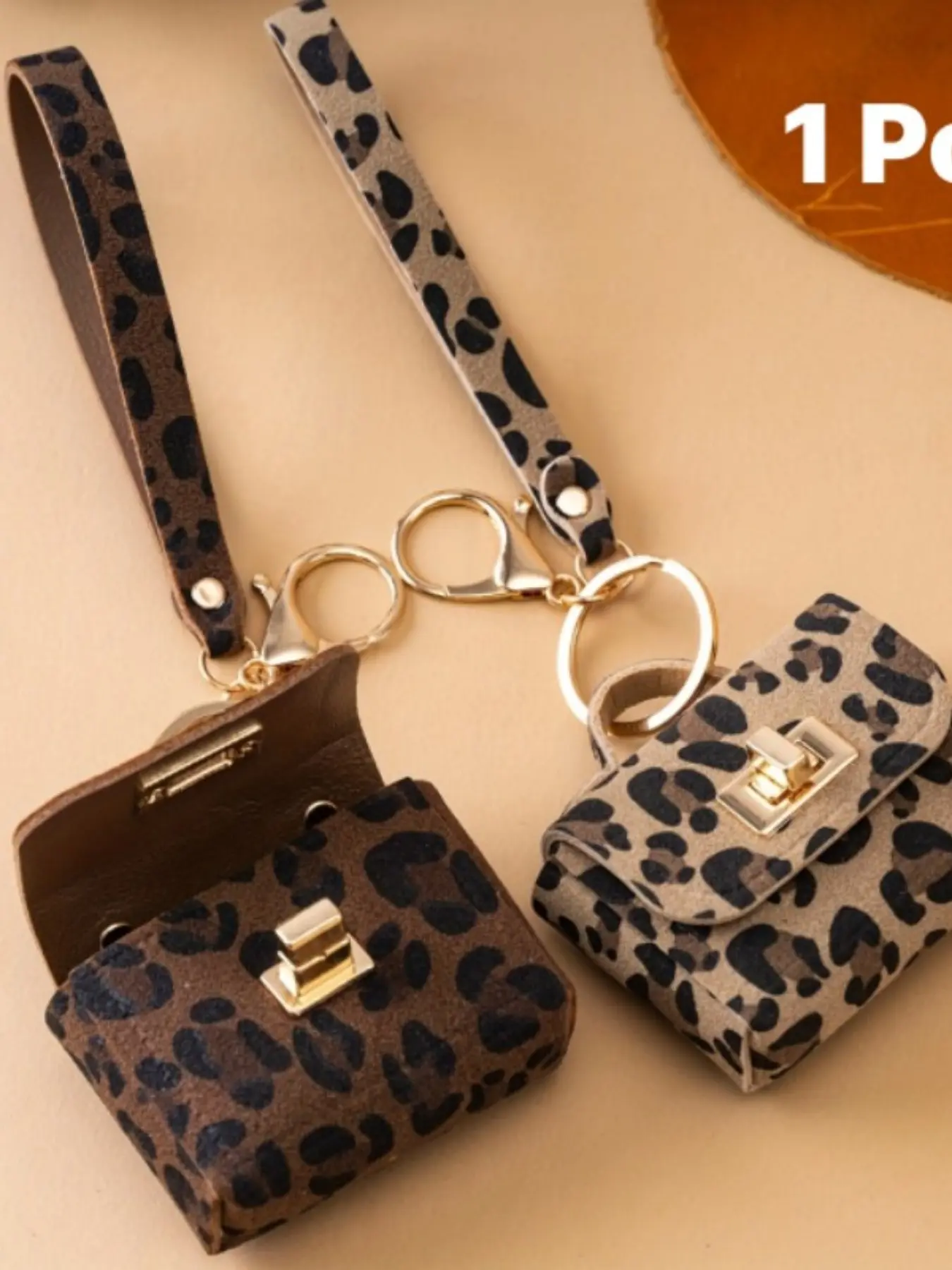 Creative Leopard Print PU Leather Keychain, High-End Coin Purse, Fashionable Key Ring, Universal for Phone Car Bag, Show off Your Style