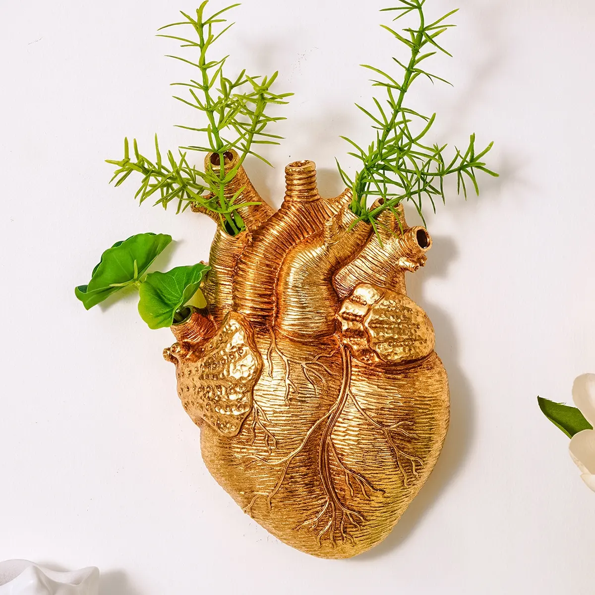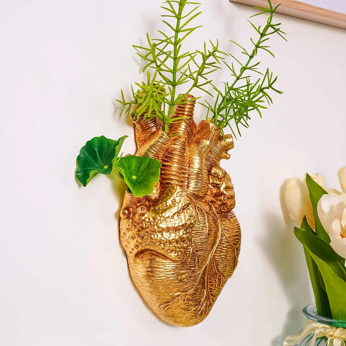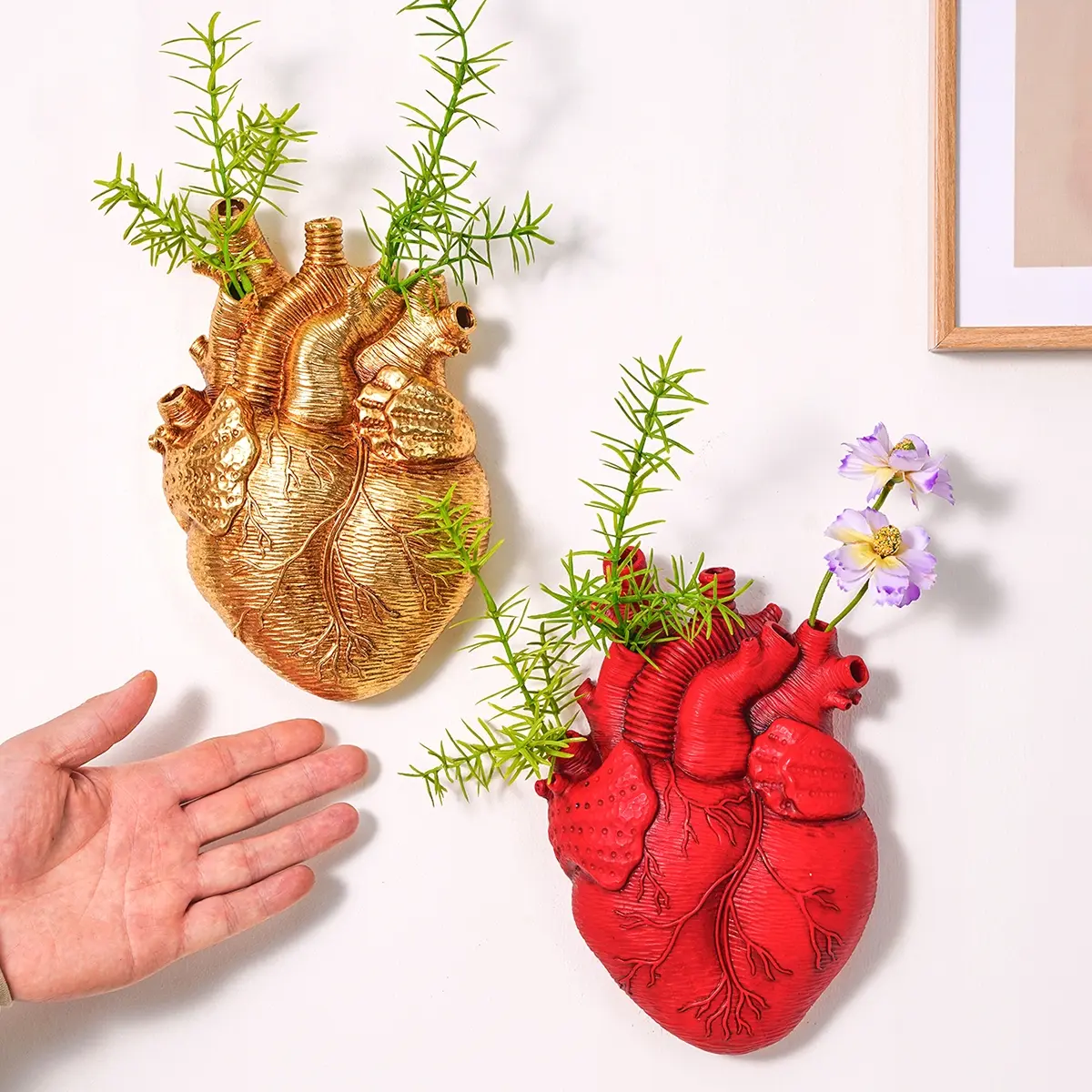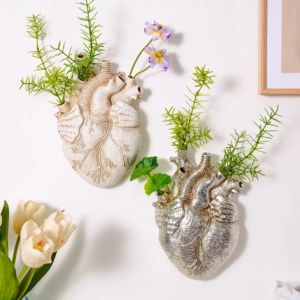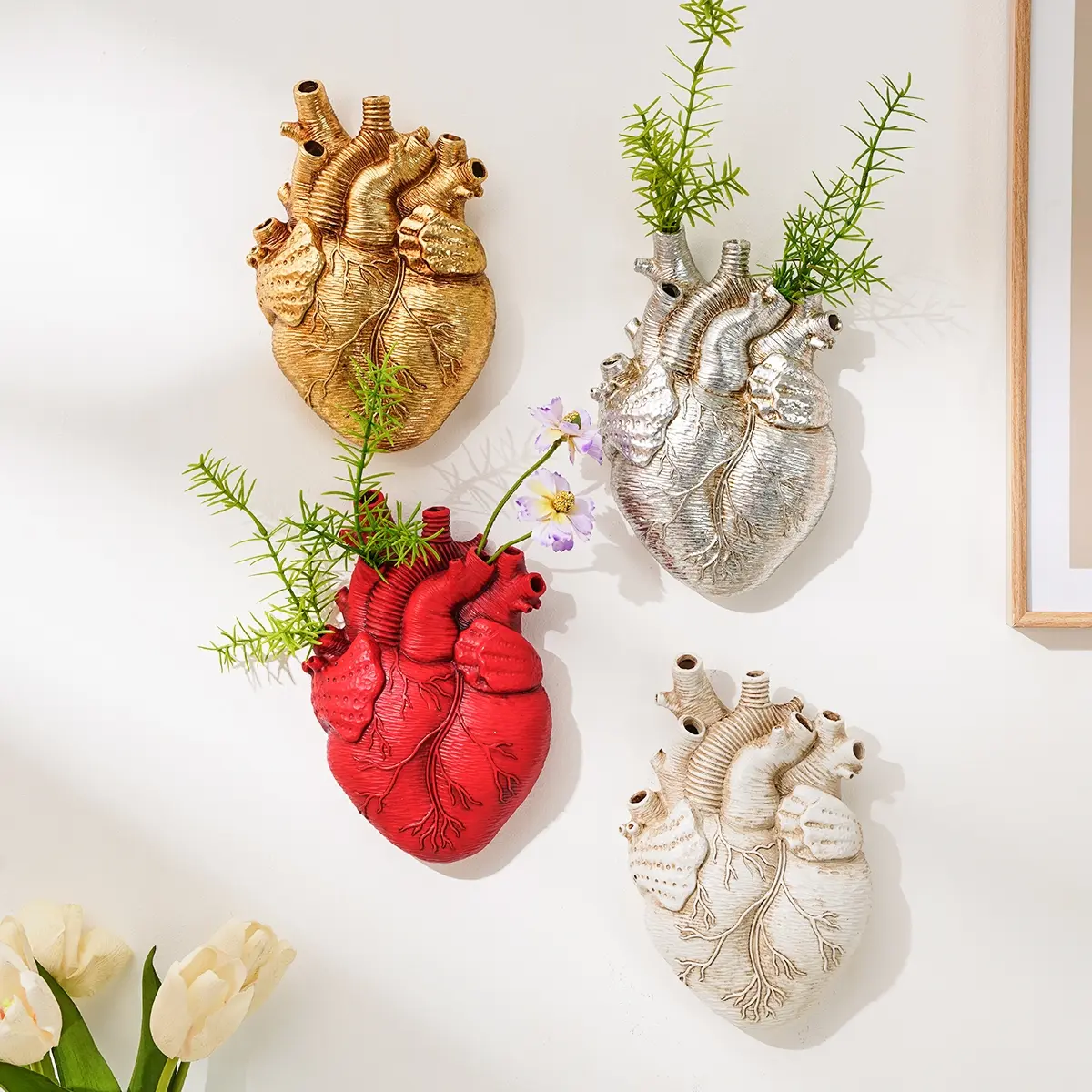 Creative Resin Flat Heart Hydroponic Hanging Vase, Modern Wall Decor, Home Decor Pots, Multi-Color Options, Suitable for Home Garden Patio Porch