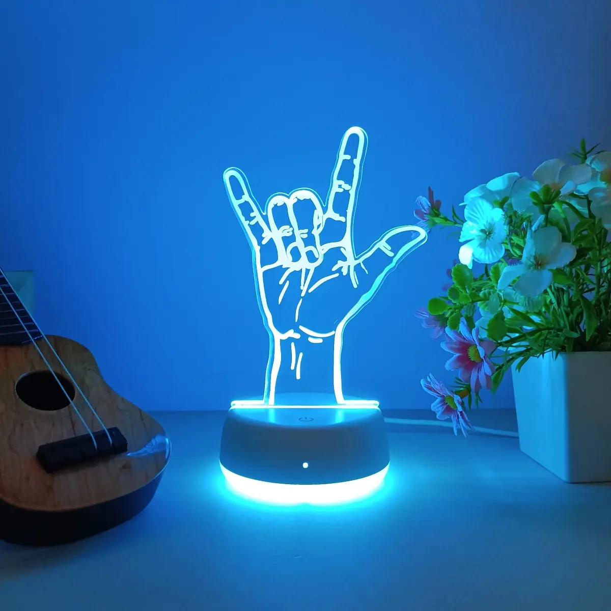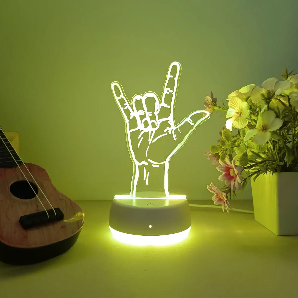 Creative Rock Gesture USB Powered 3D Night Light, Touch Switch Color Changing, Ideal Bedroom & Living Room Decor, Perfect Birthday Gift