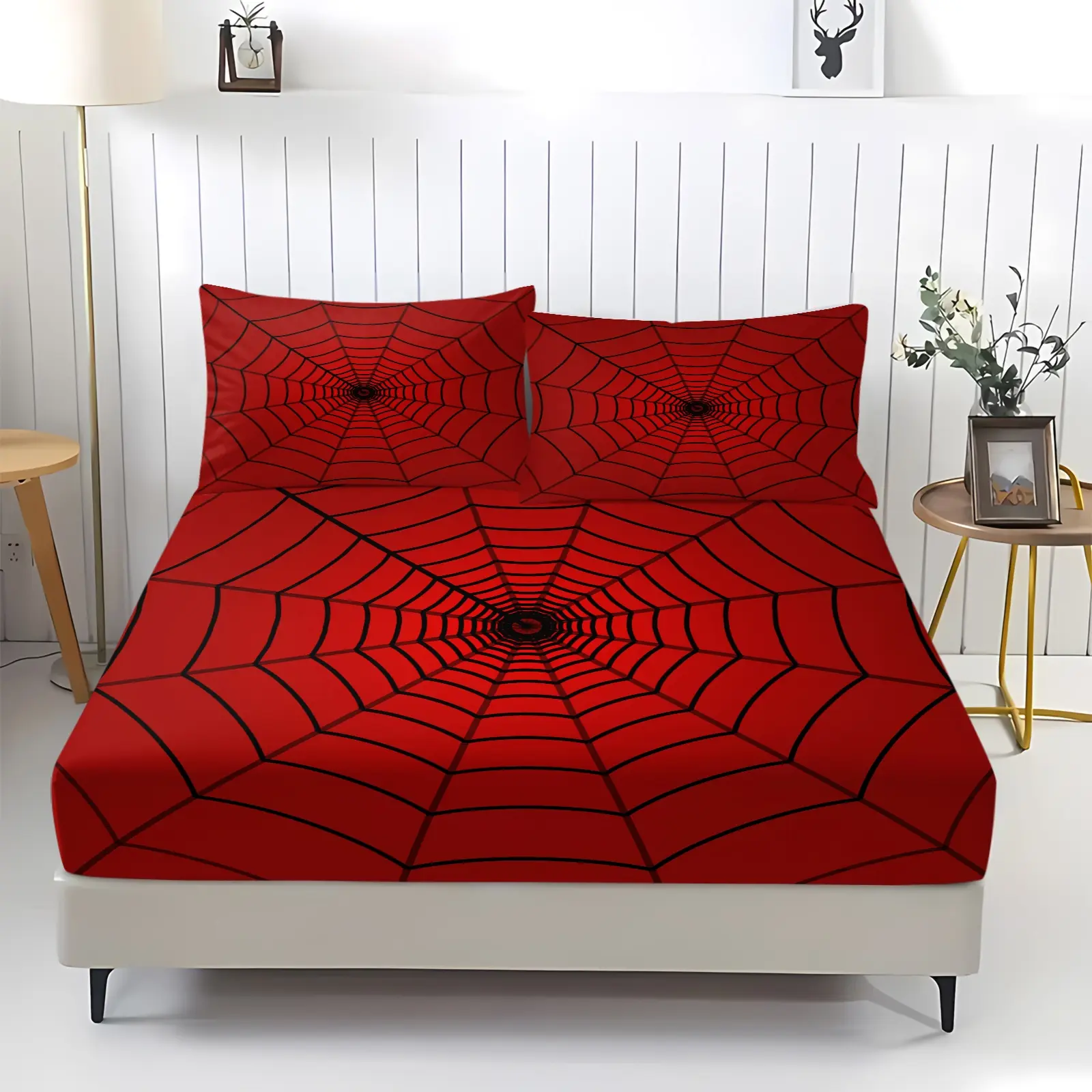 Creative Spider-Man Web Pattern Bed Sheet Set, Unique Printed Bedding, Anti-Slip Dustproof Cover, Dust Prevention, Includes 1 Fitted Sheet & 2 Pillowcases