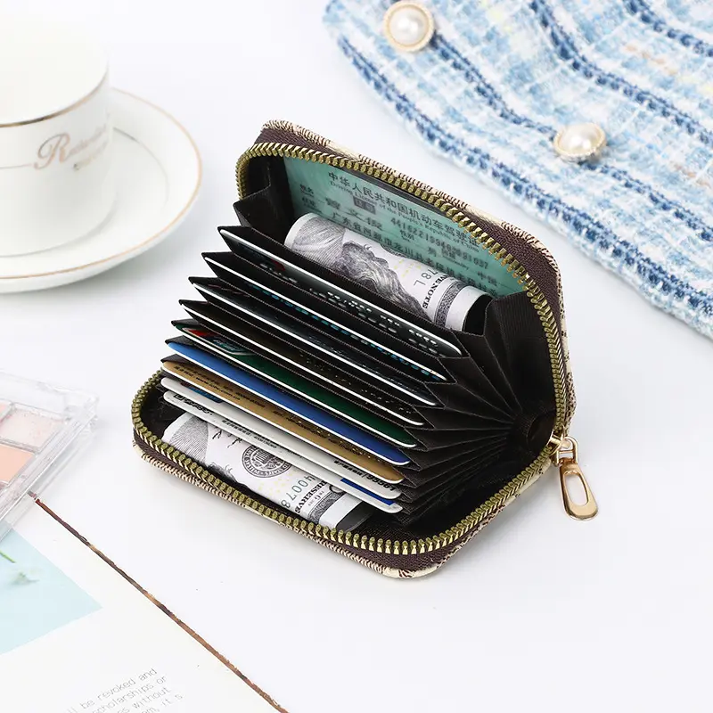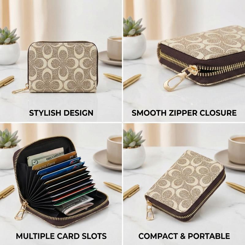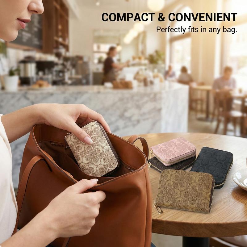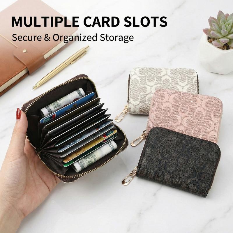 The wallet features multi accordion-style card slots, a zippered coin pocket, and a slip pocket for cash or receipts. Its compact size (10.5cm × 7.5cm × 2.5cm) keeps your cards organized and accessible, while the full-zip closure ensures secure storage.
