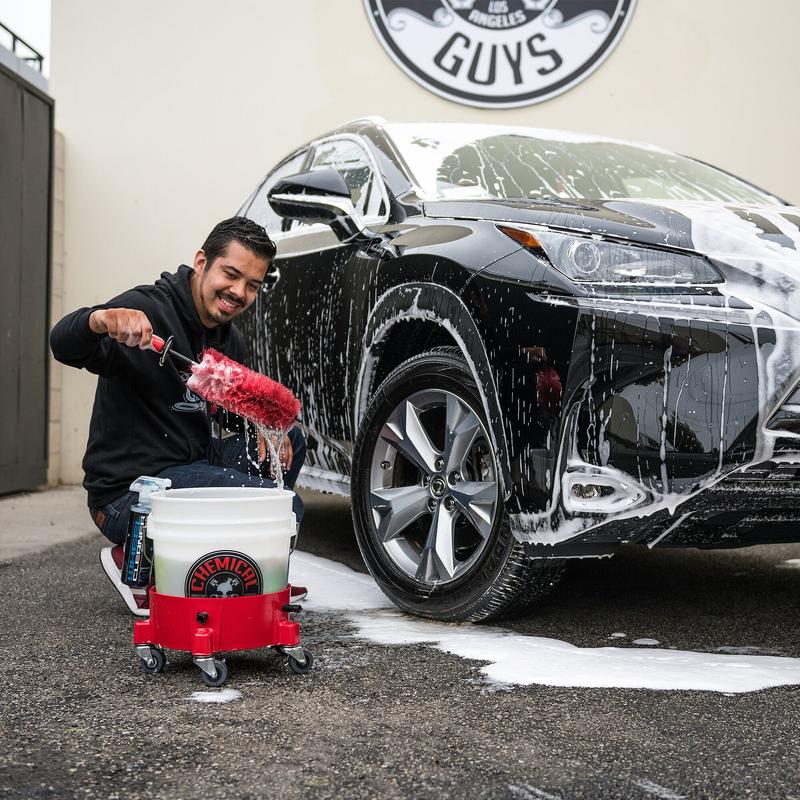 This bucket holder with locking wheels is incredibly handy while washing or detailing your automobile. I place a lid on my bucket and now I have the perfect seat for detailing my wheels. When using the bucket I can easily roll it around the car without having to lift a finger! And, if I want to lift the bucket and the dolly together, thanks to the 3 mounting bolts which secure the bucket to the dolly, I can simply grab the bucket by the handle and lift. This CREEPER BUCKET DOLLY is a must have for anyone who washes and/or details automobiles! The price is extremely reasonable for such a clever and well built bucket dolly! I can't imagine not having one now that I have it! I think Chemical Guys is No 1 in producing excellent quality auto detailing supplies of every type! They are definitely my GO TO for all my car care needs!